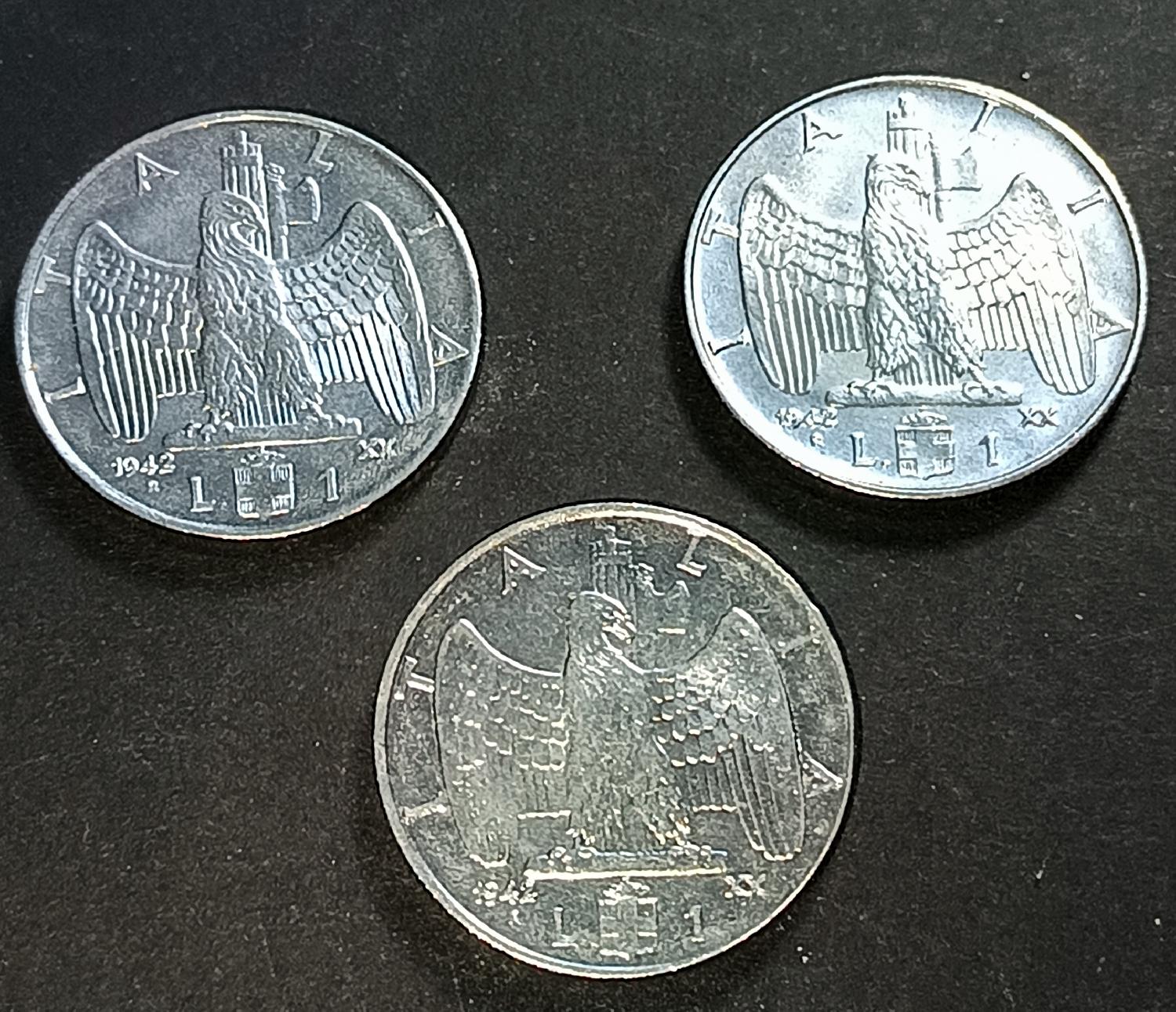 Lot de 3 Pièces 1942 - 1 Lire "Empire" - Vittorio Emanuele III aigle faisceau ww2