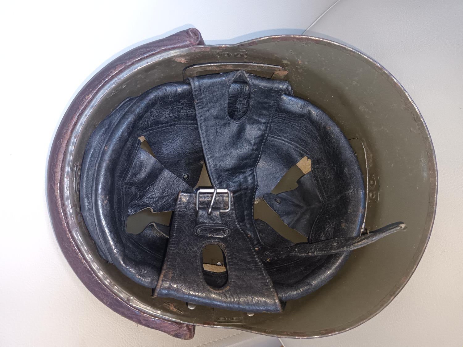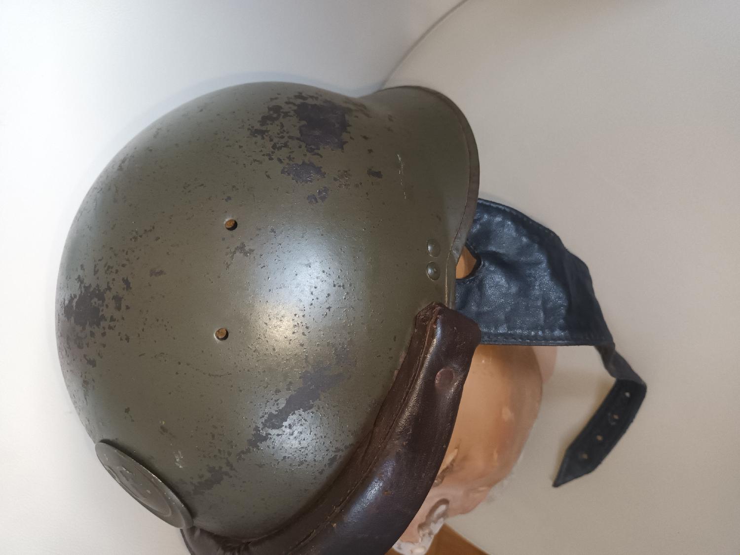Je propose ce trés beau casque pour troupe motorisée complet avec insigne tirailleurs. Sont cuir est en super état bien masqué . Il y a un marquage sur le font du casque. La peinture est parfaitement d'origine. Rare à trouver dans cet état. Fdp offert en Mondial relais payable avec PayPal entre proche