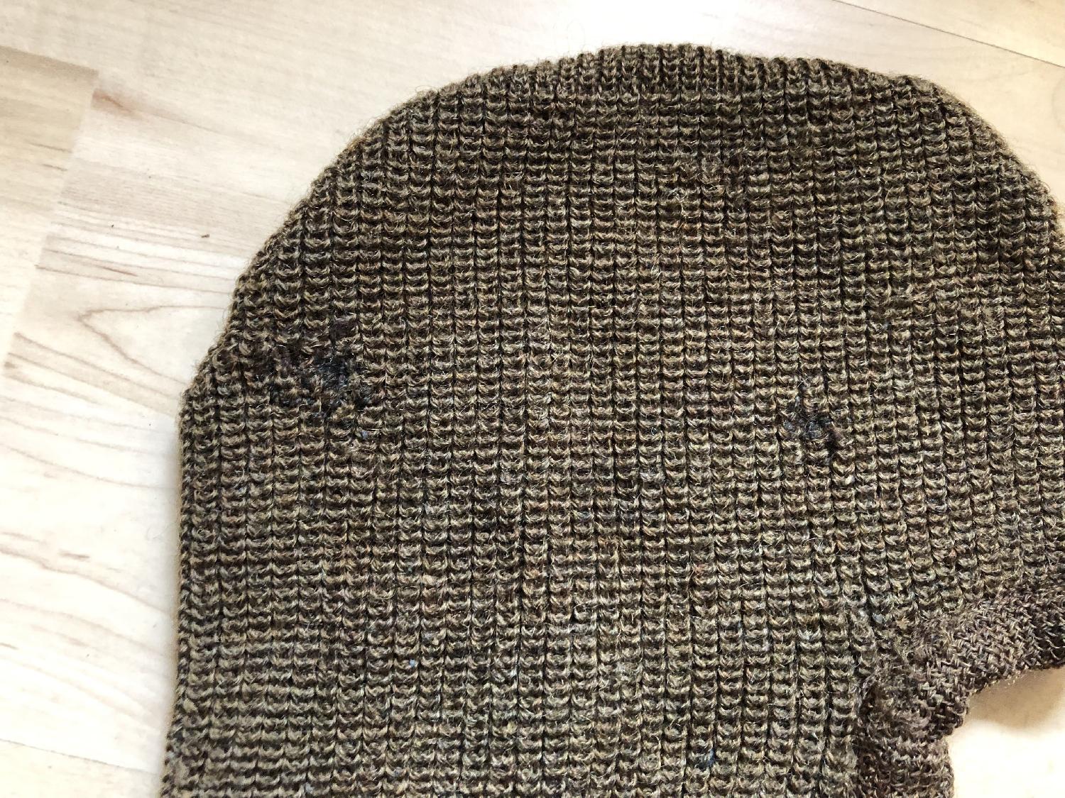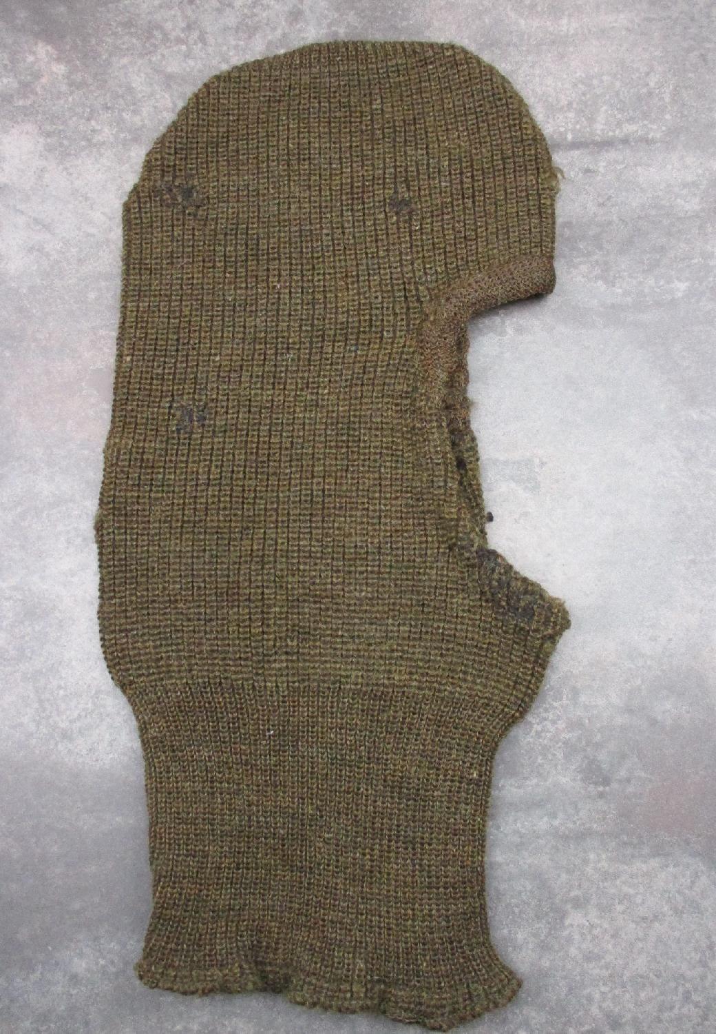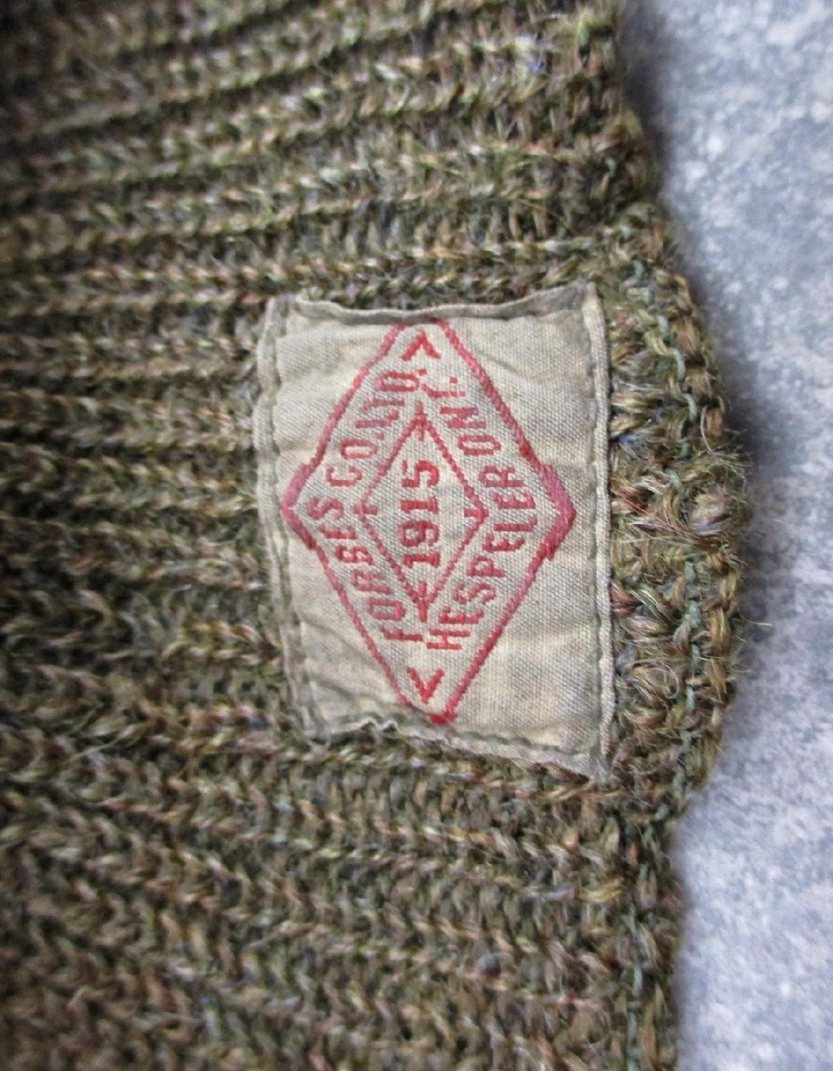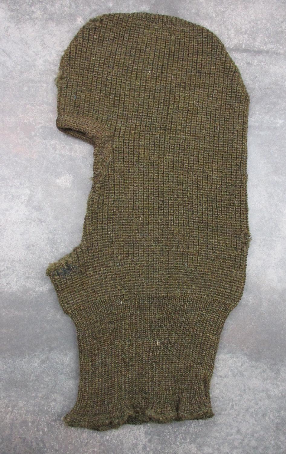 Cagoule en laine kaki de l'armée américaine avec étiquette datée 1915.