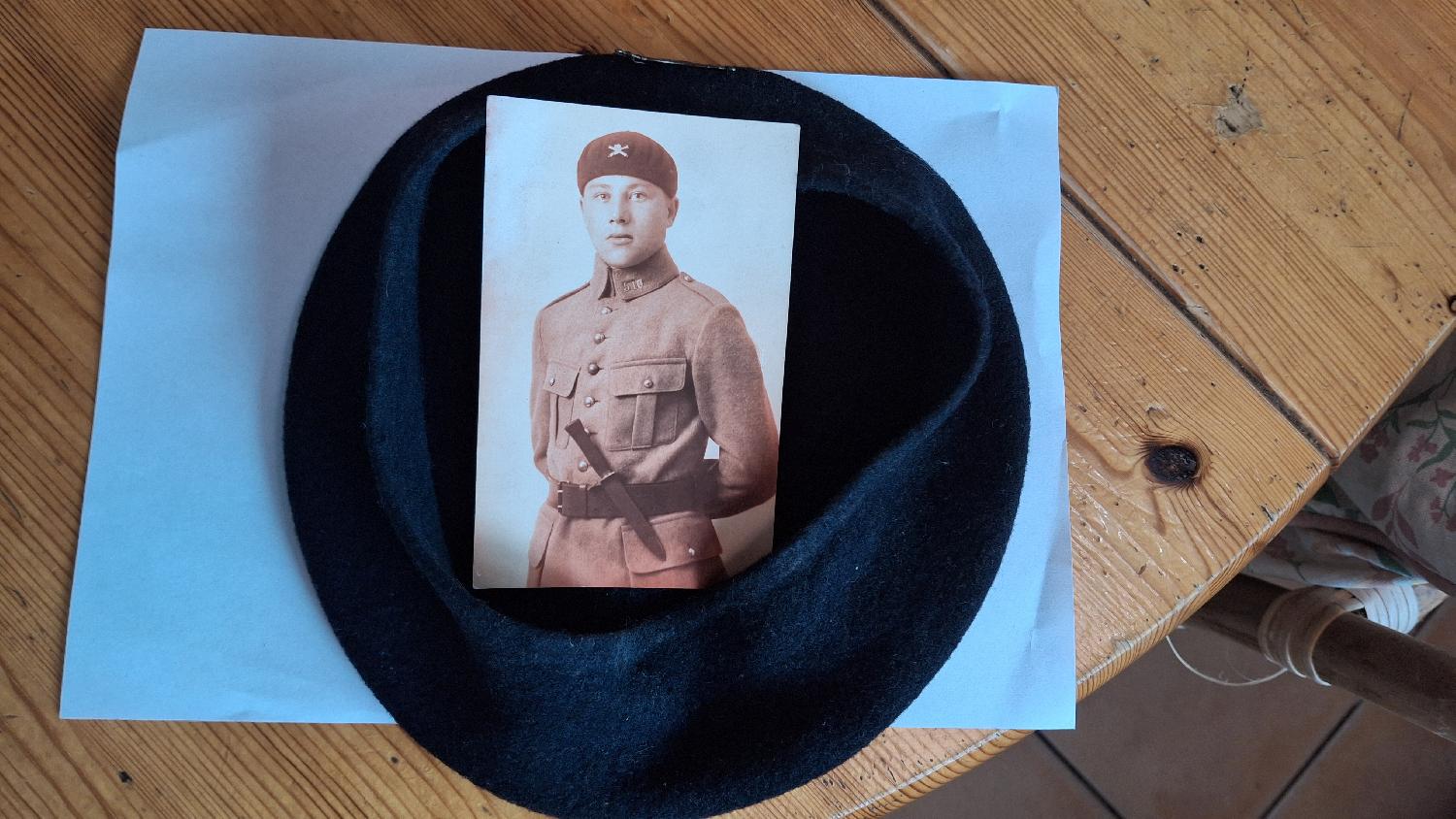 BÉRET DES CHARS DE COMBAT...FRANCE AVEC LA PHOTO D'ÉPOQUE