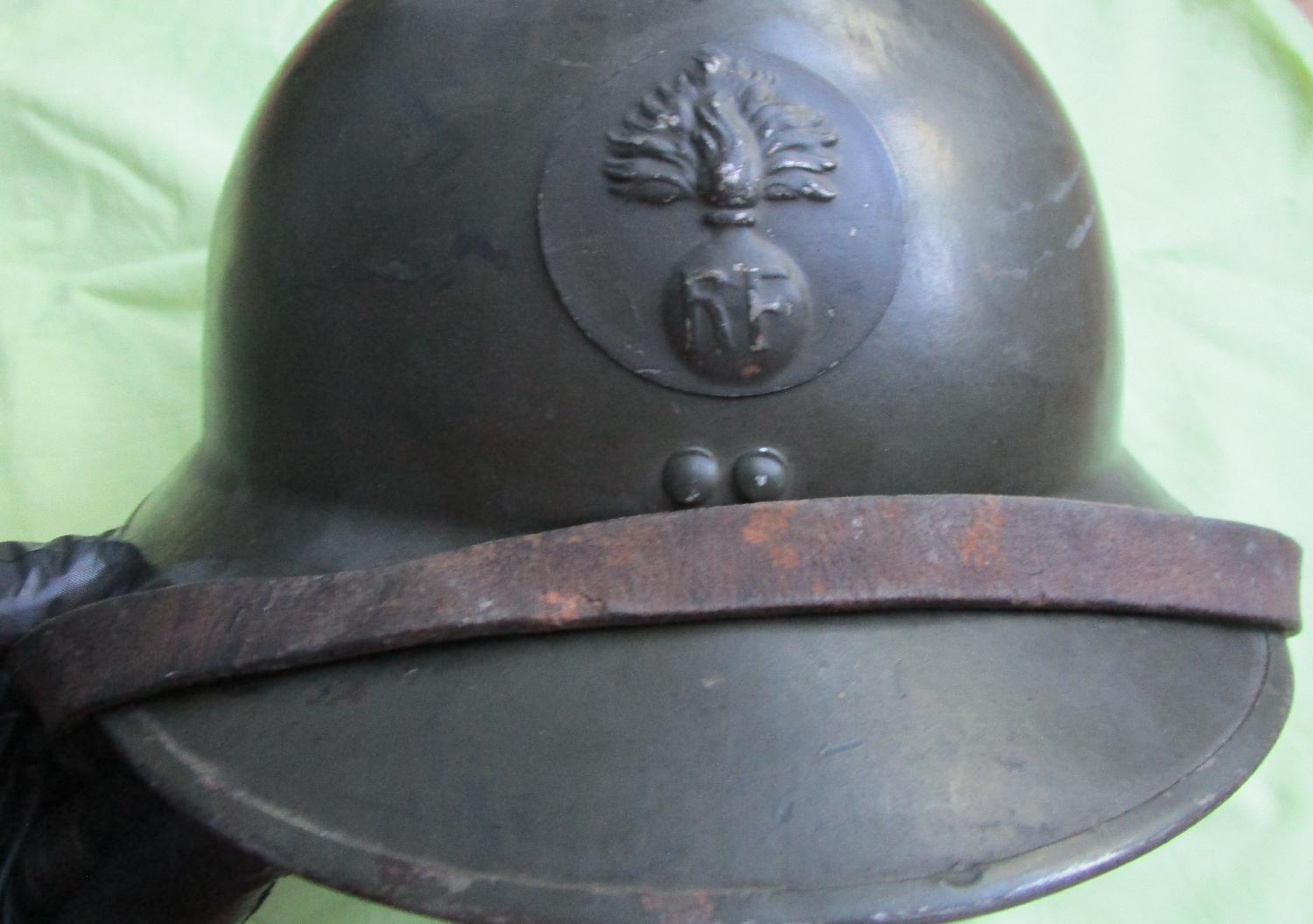 très beau casque armée Française en très bon état, cuir intérieur et jugulaire impeccable. Seule une petite attache du cuir est cassée mais ne gêne en rien le port de la pièce.