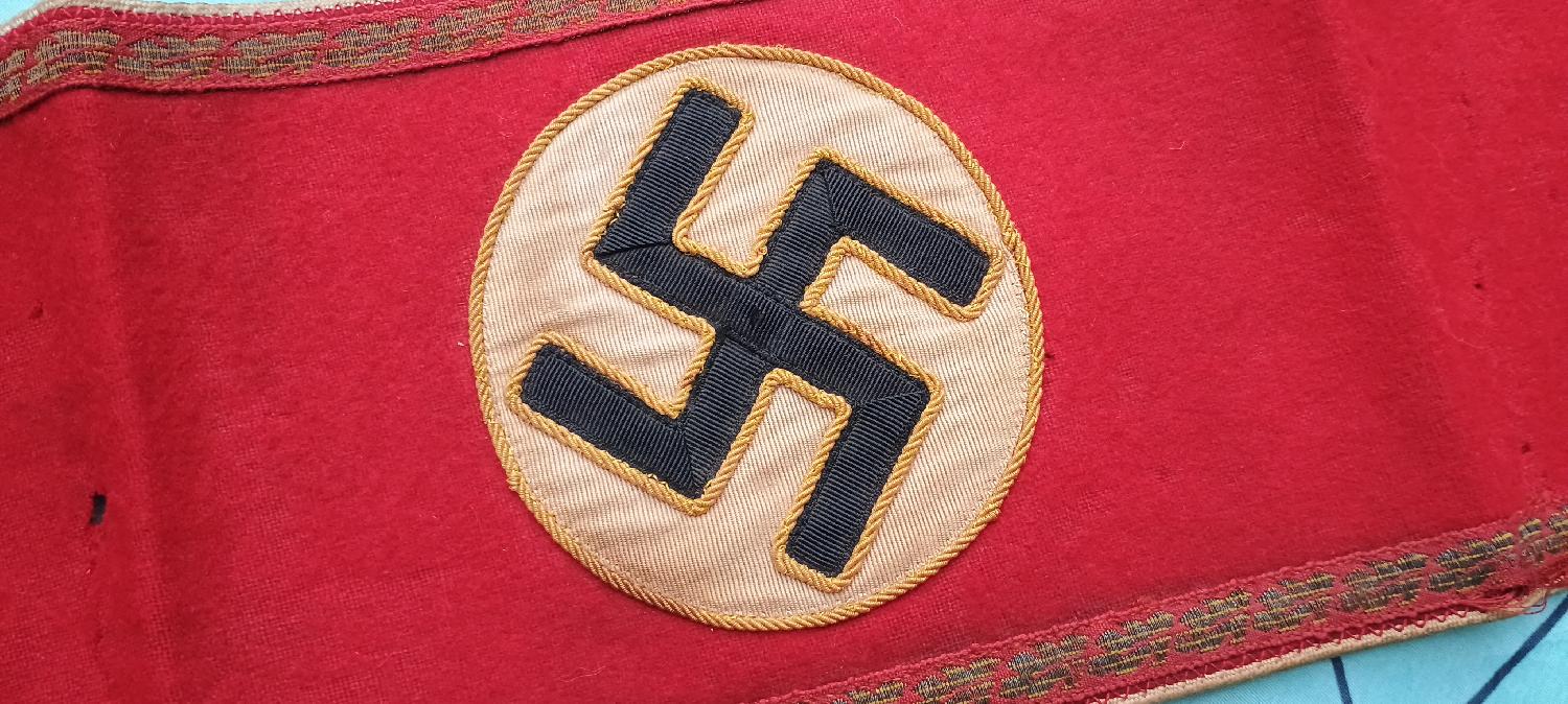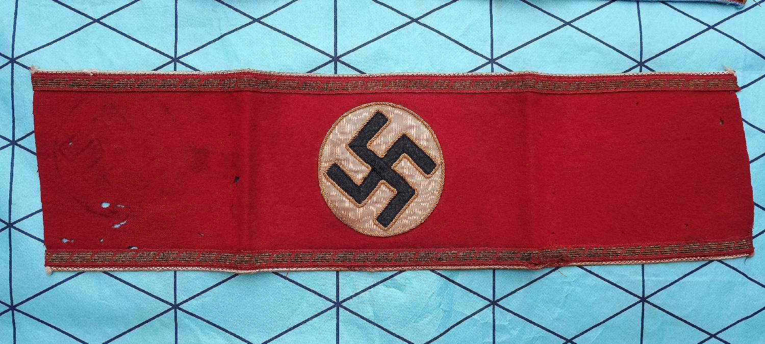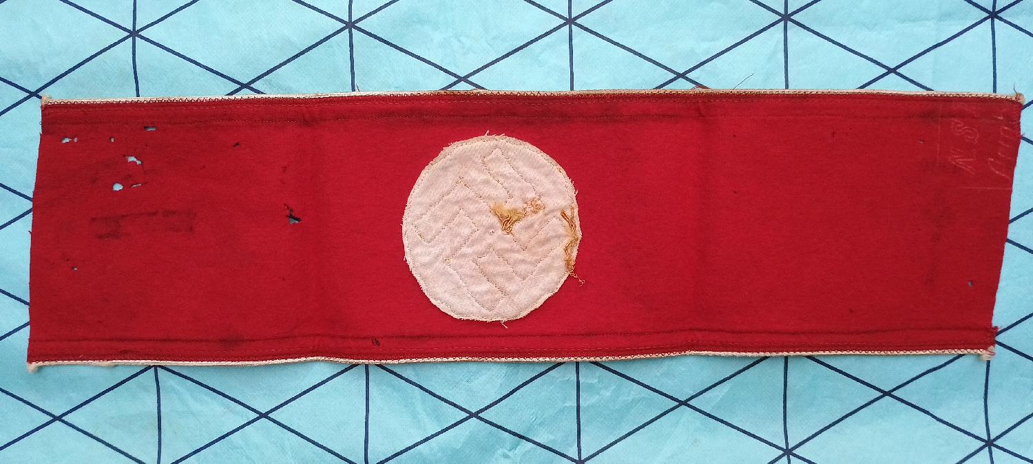 Brassard multipièces Kreis Leiter einer Stelle - Kreis Level - Administratif - Passepoil blanc. Belle pièce en laine avec quelques trous de mites. Tampon NSDAP en partie présent sur l'intérieur. Trace centrale d'un aigle qui n'y est plus, gardé par le précédent propriétaire, identique à mon autre brassard à vendre. Aigle qui n'avait rien à faire de toute manière sur ce modèle de brassard, certainement rajouté post war pour le vendre plus cher. Envoi par Colissimo recommandé ou par Mondial Relay recommandé. Paiement par Paypal entre amis ou par virement.