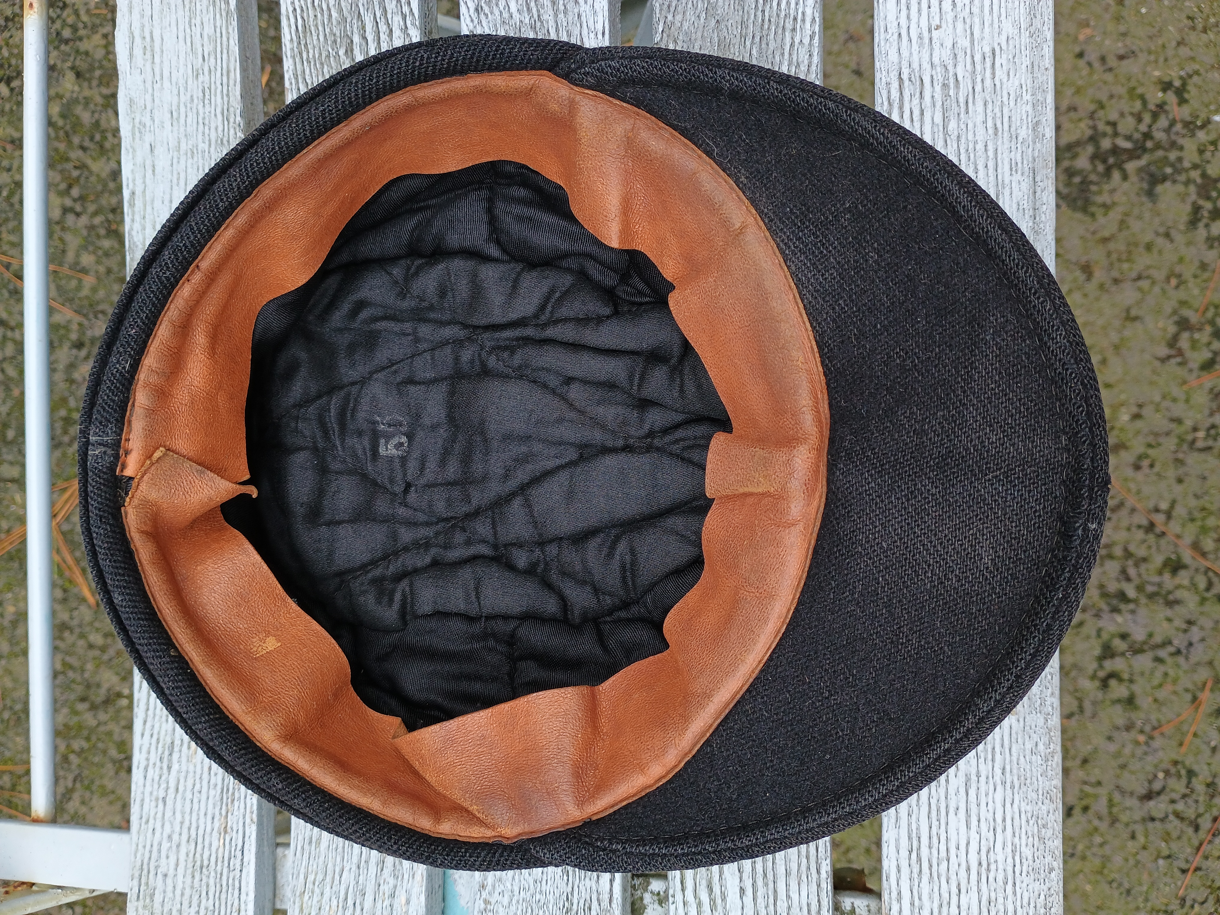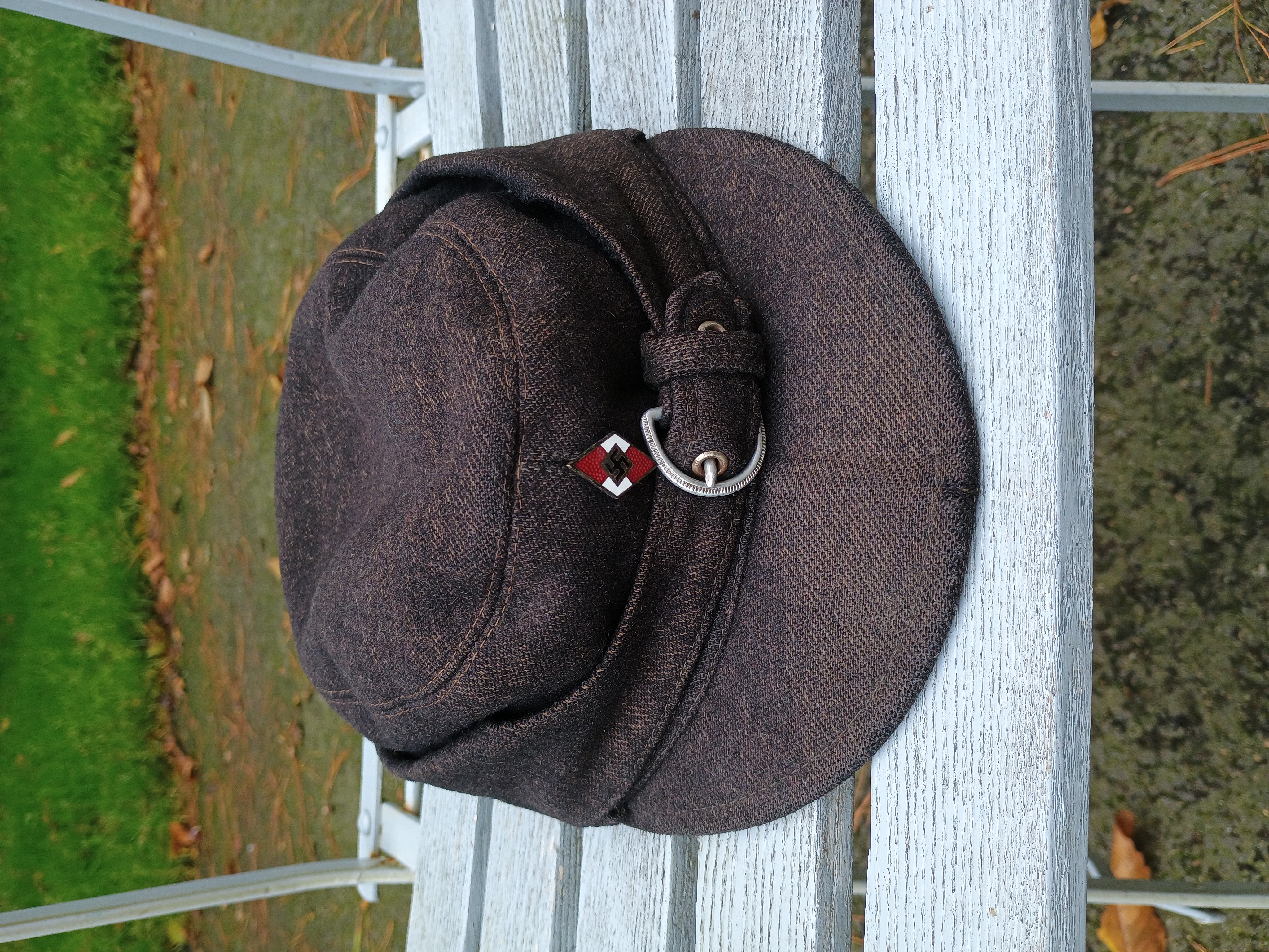 Casquette HJ und DJ-Winterdienstmütze en drap noir de la tenue hivers. Taille 55. Léger accroc à l'arrière visible sur la photo et à l'intérieur près du 55. Bon état général. Étiquette recollée enfin trace de colle sur le pourtour et visible sur la photo. Code RZM M5/71 Overhoff & Cie., Lüdenscheid d'après ce que je lis pour la boucle. Envoi par Colissimo recommandé ou par Mondial Relay recommandé. Paiement par Paypal entre amis ou par virement. (les photos ne veulent pas se charger droites désolé)