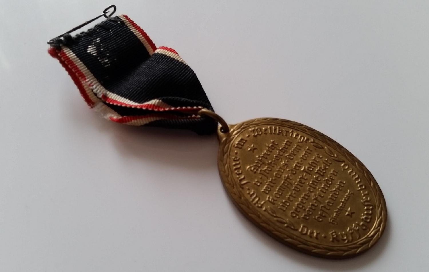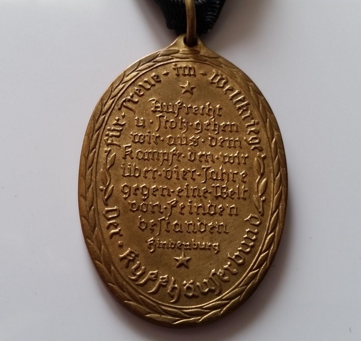 Médaille commémorative des combattants allemands de 1914-1918 (Kyffhäuserbund « Blank die Wehr rein die Ehr »). Belle dorure et ruban double face avec agrafe.