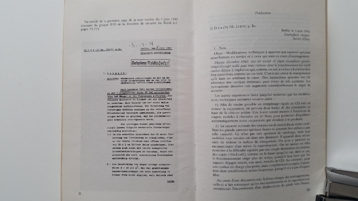 Livre d’origine allemande relatif aux chambres à gaz. Edition de 1984, traduite en français. Format 13,5 cm sur 21,8 cm. 303 pages avec plans et photos. Très bon état général.