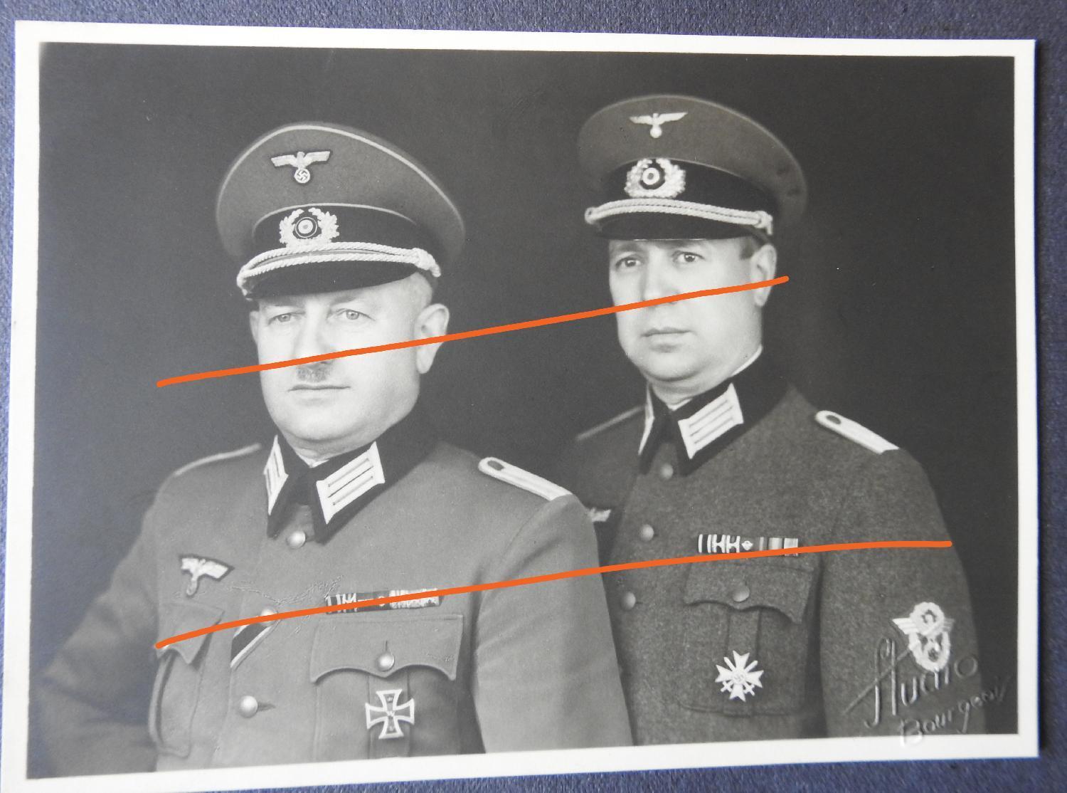bonjour je vends un lot d'albums de la même famille qui démarre avec ses parents vers les années 1900/1920 puis continue après la guerre: années 60/70? au départ les parents de la personne concernée son père était dans la police avec son oncle? des photos ww1 en grand uniforme puis le fils dans sa jeunesse certainement dans les H.J. puis dans la Luftwaffe. On le retrouve un peu en France, dans les Balkans, en Grèce, des photos diverses; train blindé, avions, pilotes ,personnalités dont Adolf Hitler et hugo sperrle entre autres (je n'ai pas donné un noms aux autres) bref un ensemble assez important et rare puisque l'on à un membre de la luftwaffe du début de sa vie et presque à la fin avec des photos civiles....j'ai pu tirer quelques infos à l'achat de cet ensemble qui sort de famille,j'ai son nom (du soldat) je sais qu'il à été fait prisonnier des russes et relâché 5 ans aprés...il était mécano ensuite dans le civil....je peux faire quelques photos à ceux qui sont vraiment intéressés, mais pas la totalité qui est considérable...cordialement