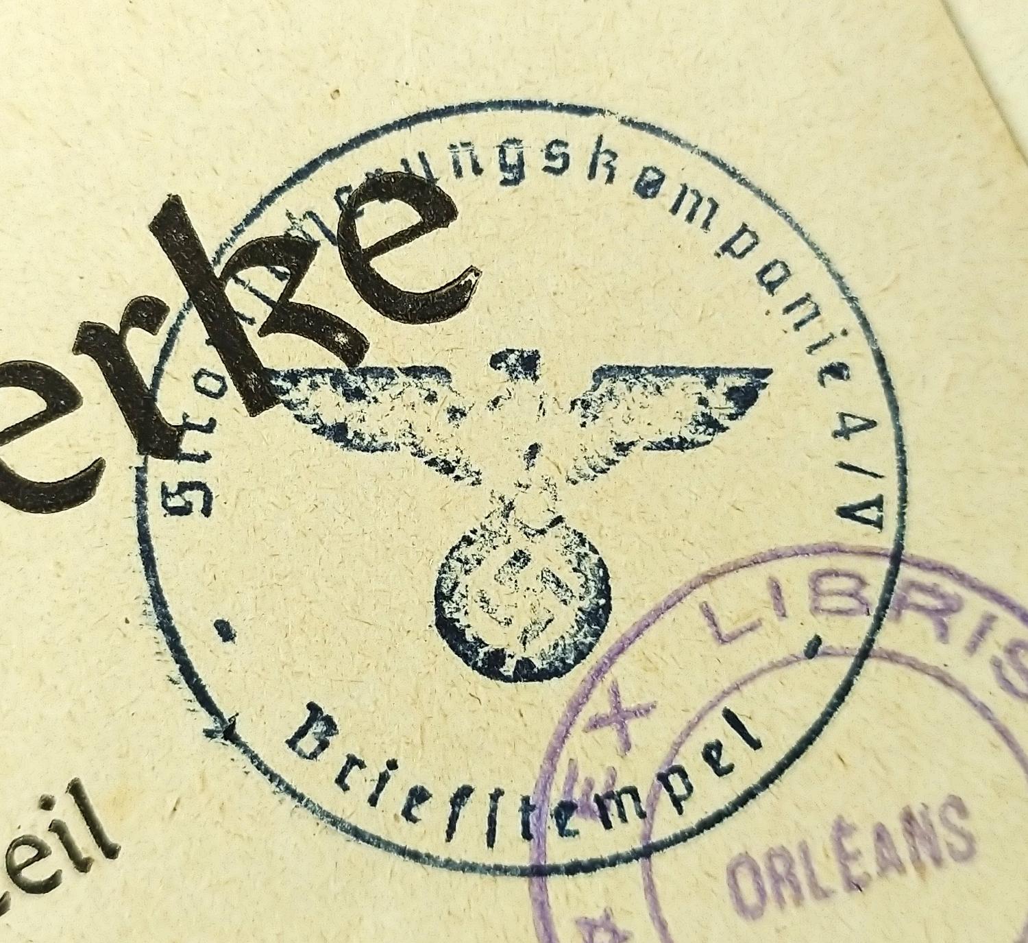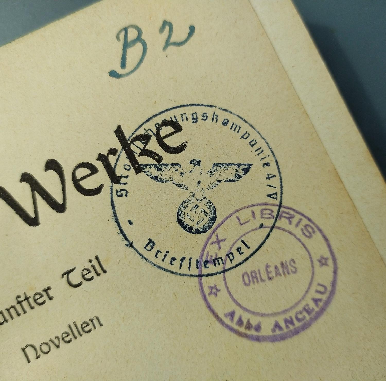 Ouvrage en Allemand avec cachet de la 4. Kompanie du Stromsicherungs-Bataillon V, bataillon dédié à la reconstruction des Ponts (voir rubrique identifications).