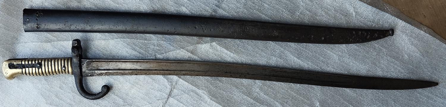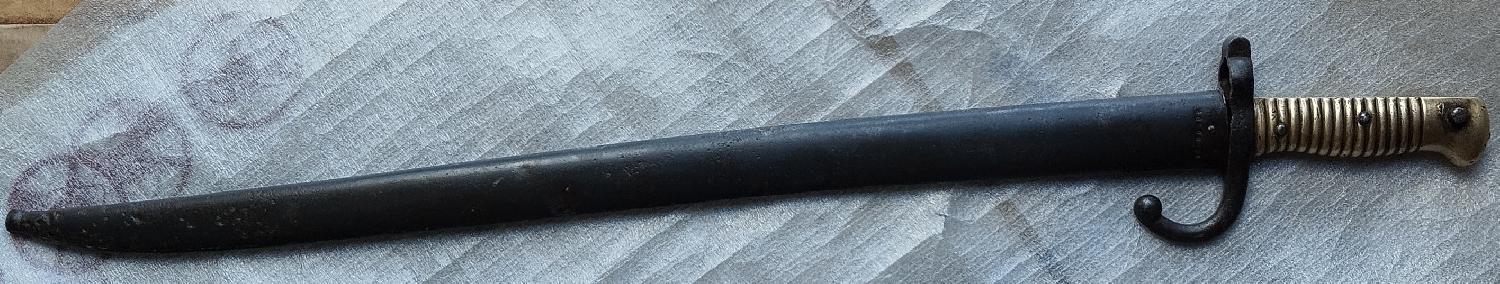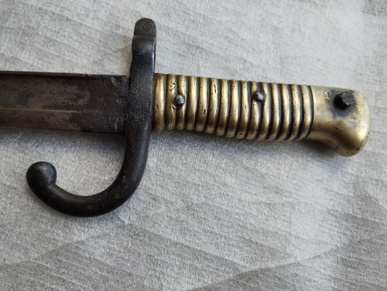 Baïonnette chassepot modèle 1868 daté de 1874 à la manufacture de Tulles.