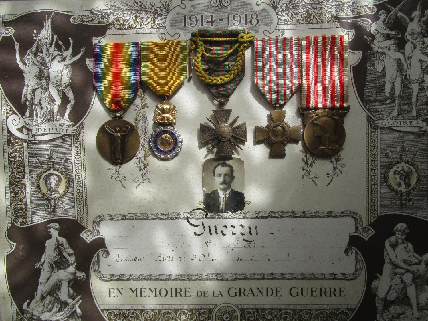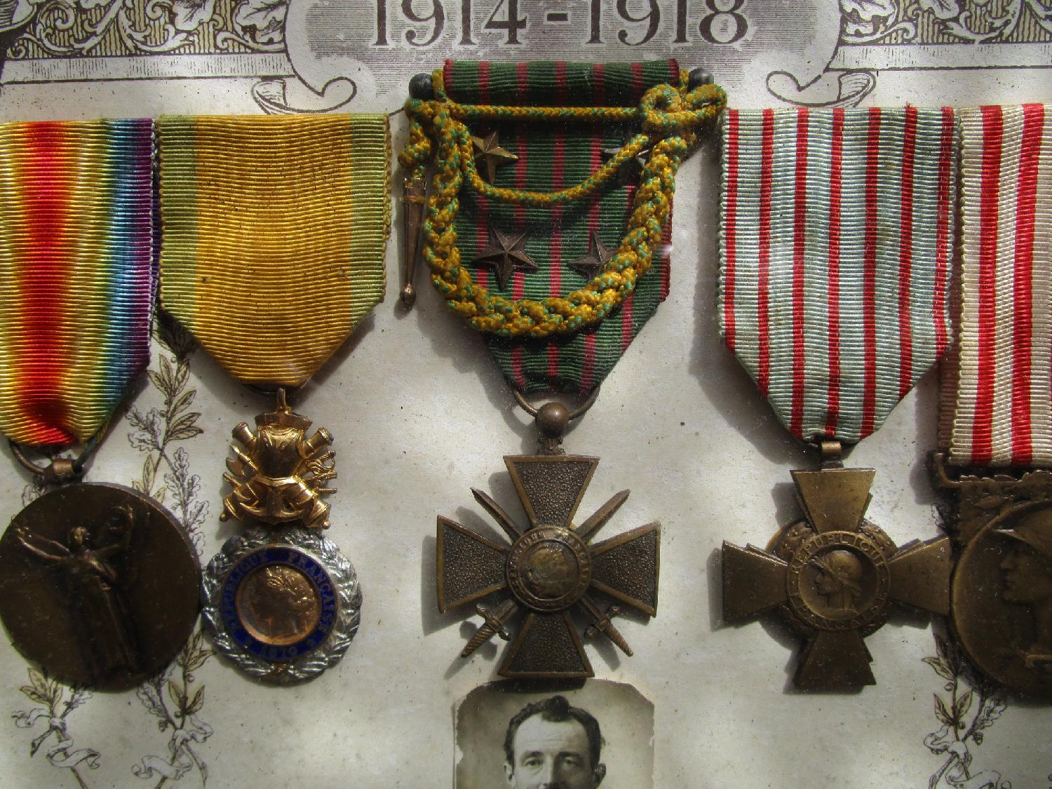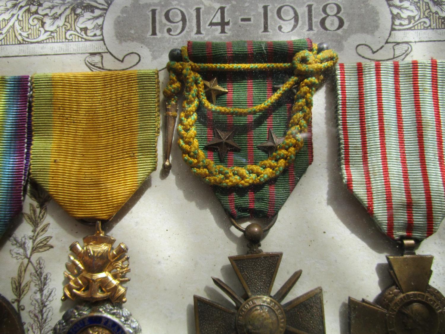 Médailles d'un poilu dont une avec Fourragère Miniature BE.