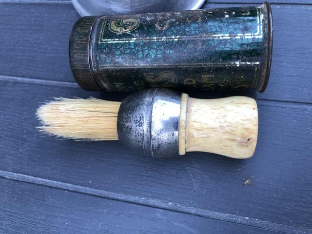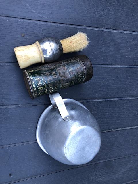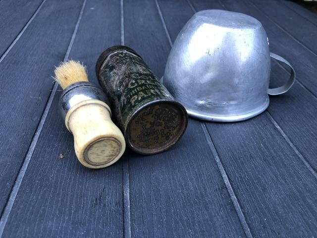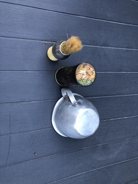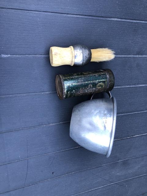 Un quart alu un boite à savon gibbs et un blaireau en os le tout en bon état port à prévoir en mondial