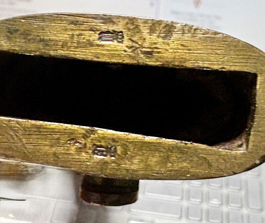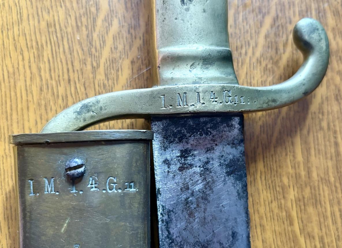 - Lame à une gouttière centrale, marquée au talon : '' S & K '' et plusieurs poinçons sur le dessus de la lame