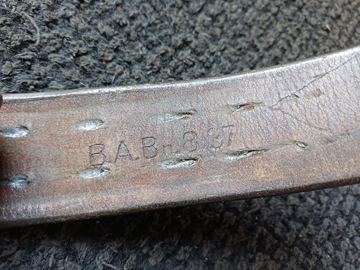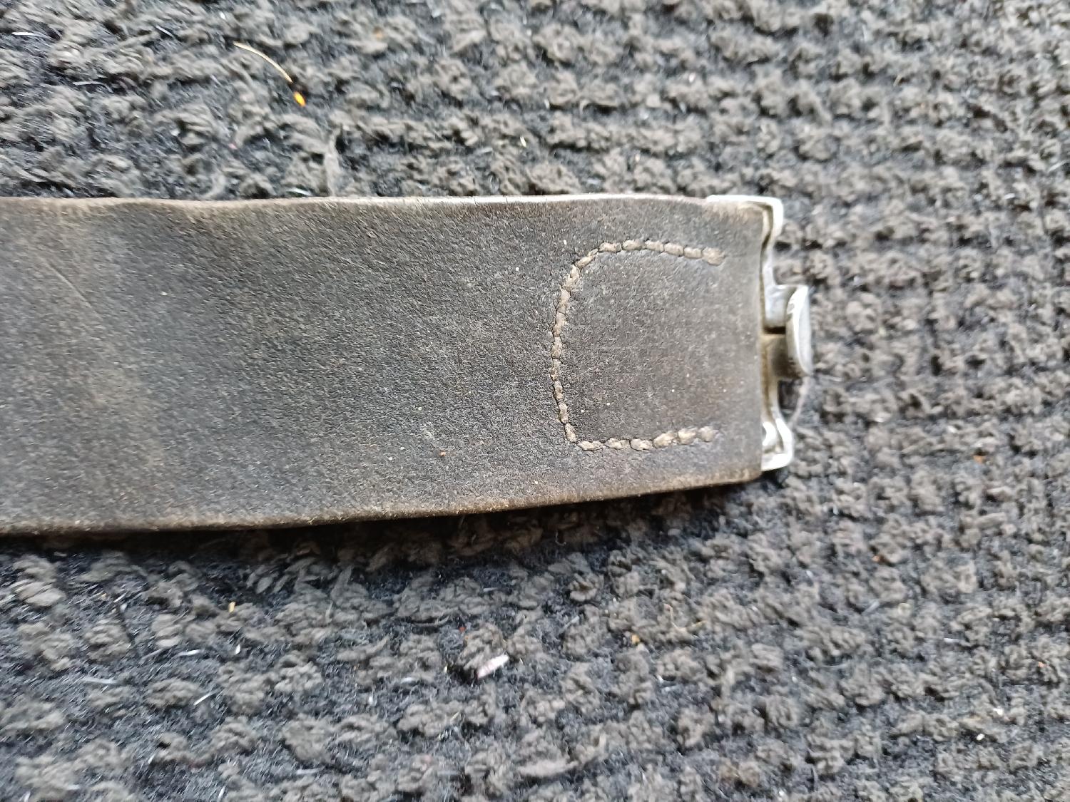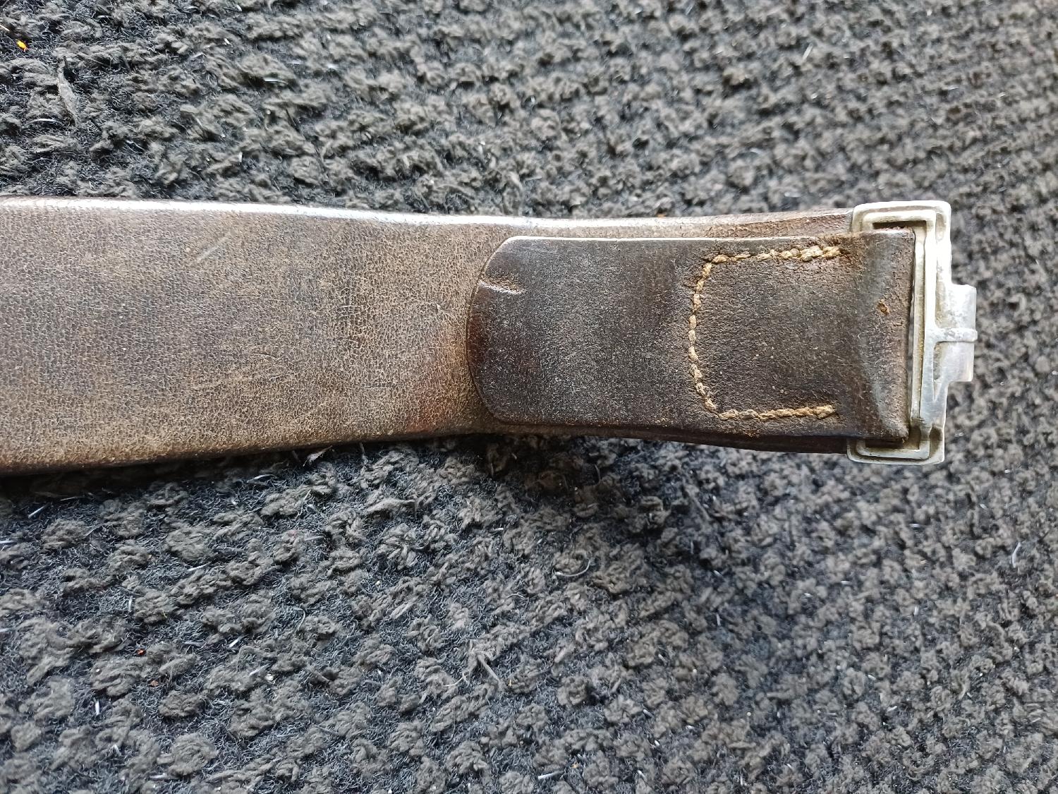 Cuir souple avec beau marquage de 1938 et sa boucle aluminium en belle état sans pattes