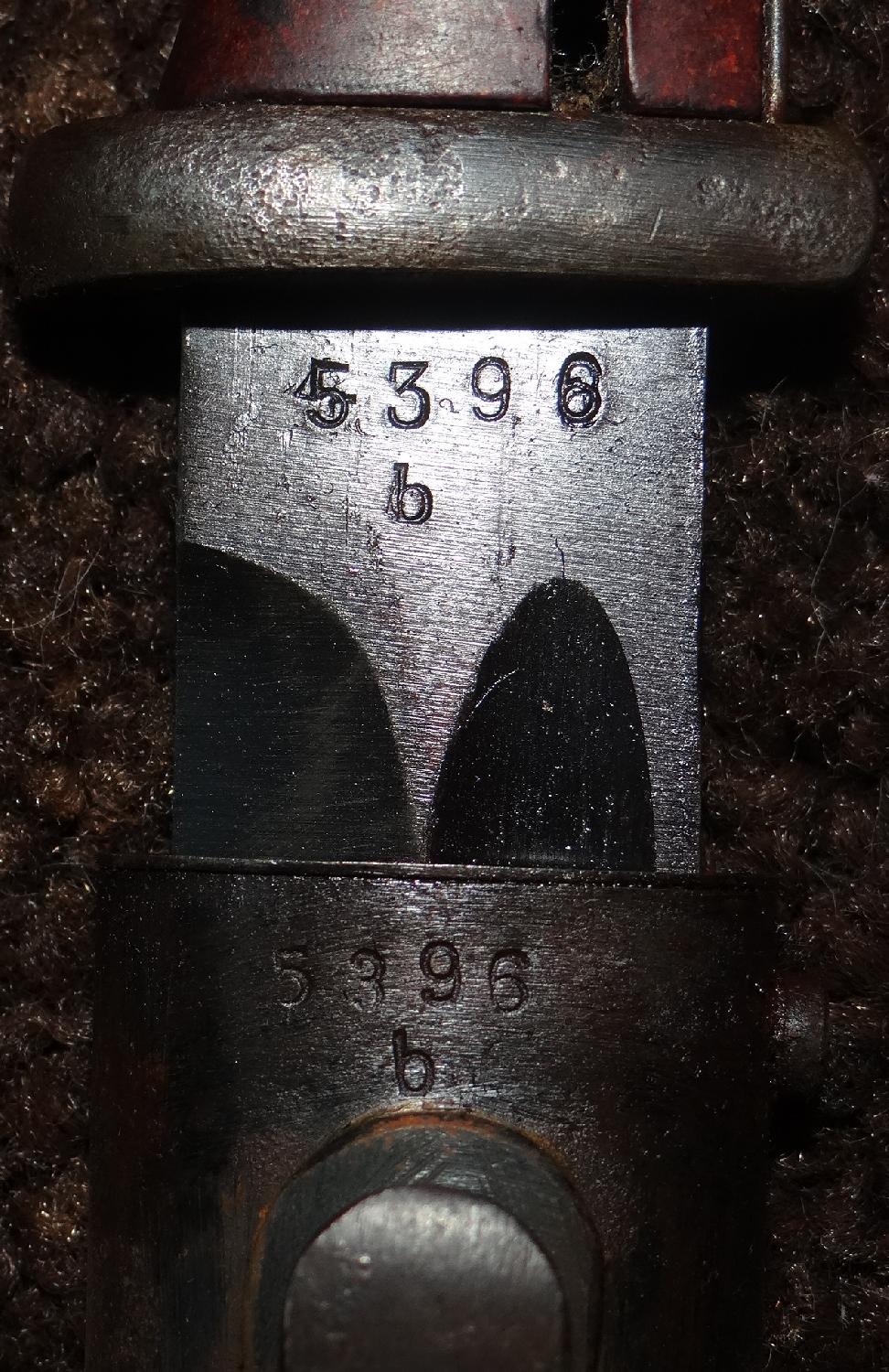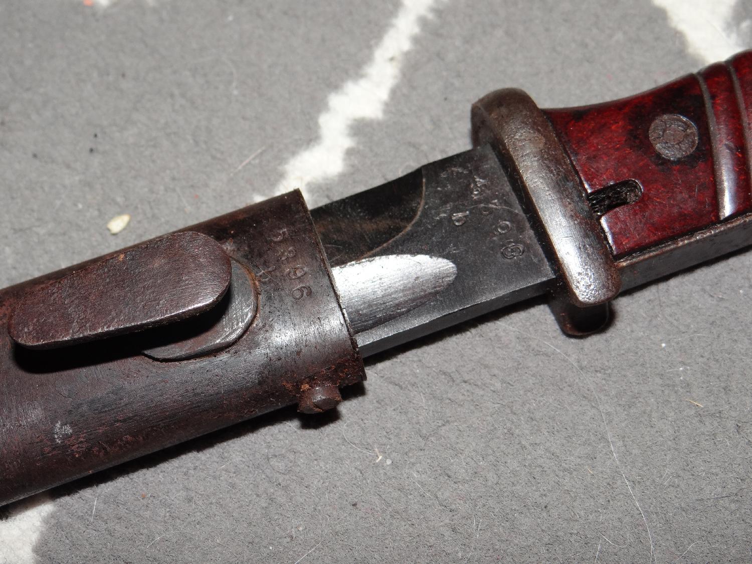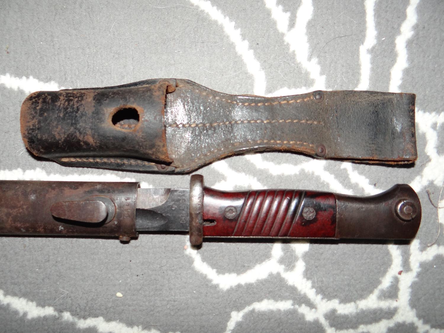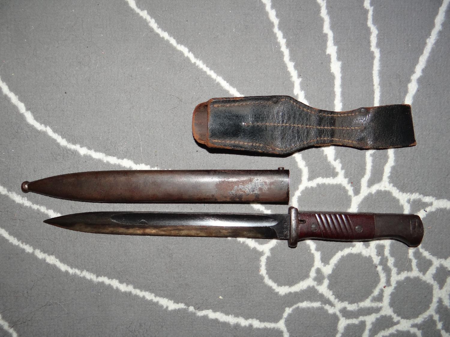 Baionnette k98k meme marquage et numéro 43 cqh, avec gousset cuir. Superbe ensemble