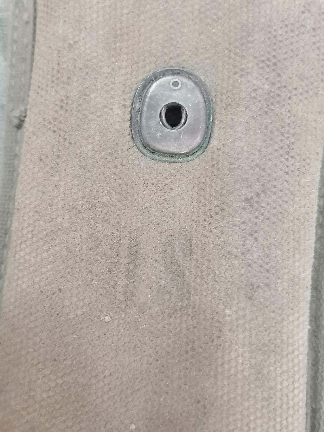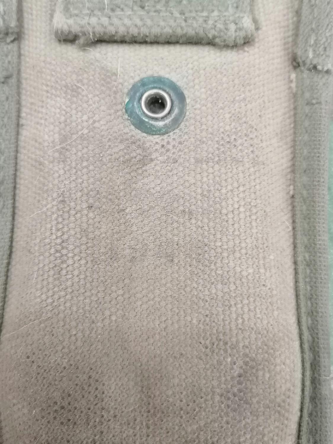 Une poignée est fendue, et l'étui a une tâche de rouille au dos.