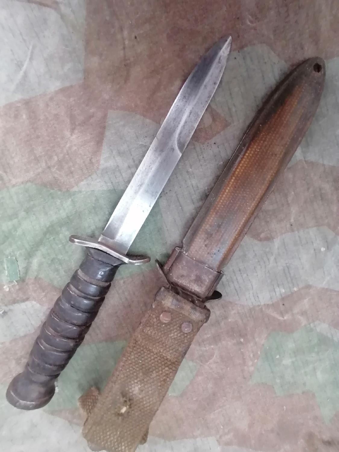 Bonjour je vends ce poignard USM3 marquages Camillus sur la garde, avec son fourreau USM8 marquage BMCO.