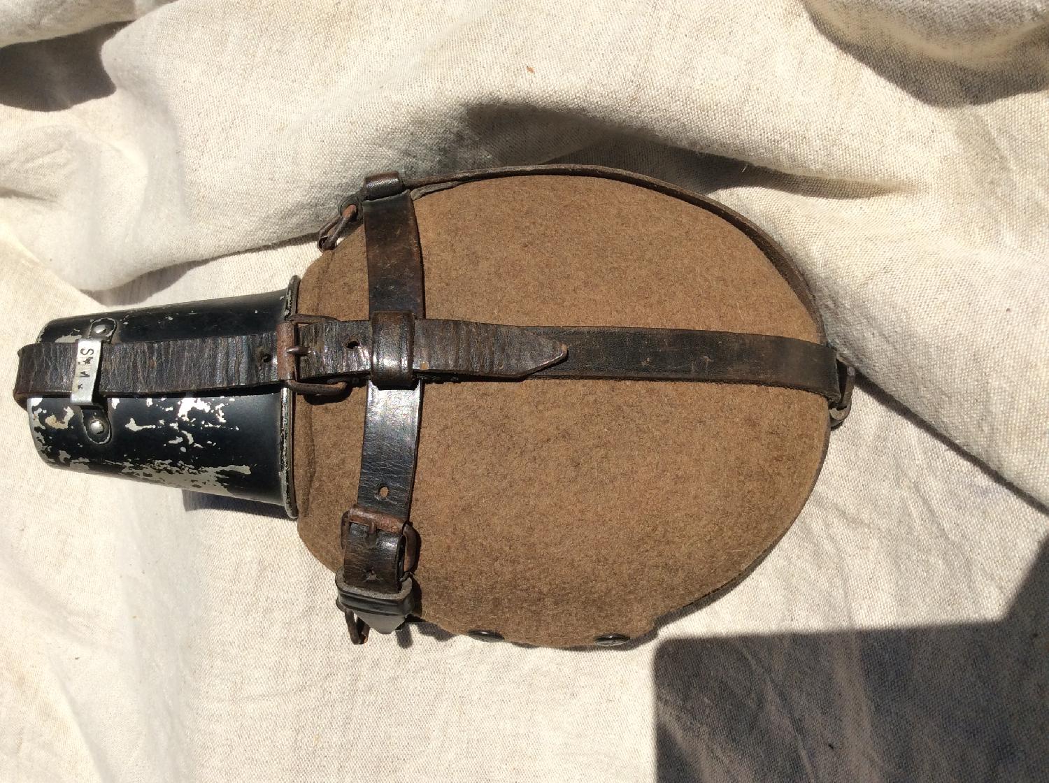 Bonjour, je vends cette gourge gebirgs jäger du tout premier type, a ne pas confondre avec une sanitaire qui a un crochet et pas un mousqueton comme ici. c'est vraimment un rare équipement des troupe de montagne. elle est superbe. Defaut la sangle du bouchon est cassée mais c'est invisible.