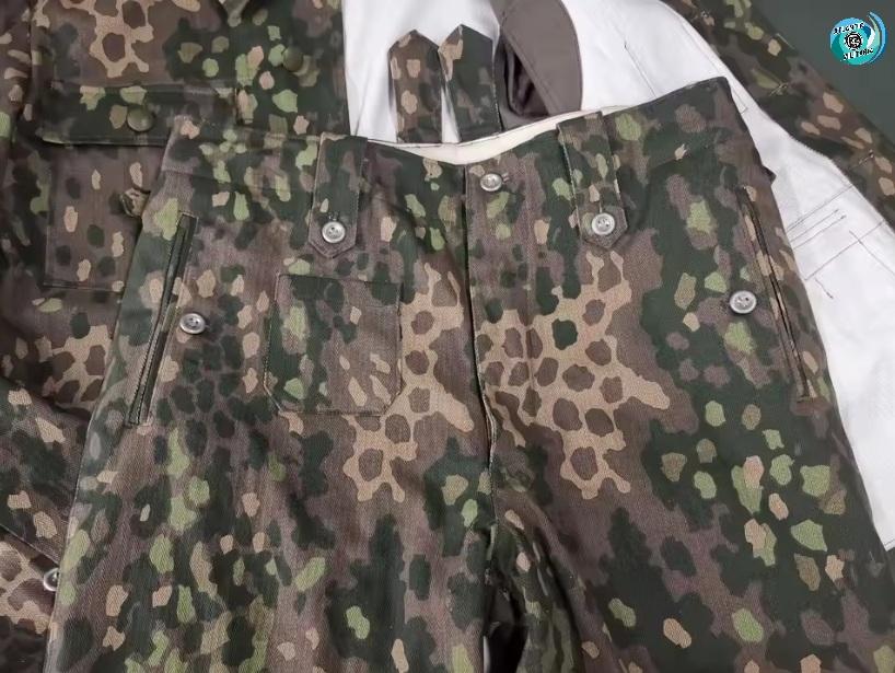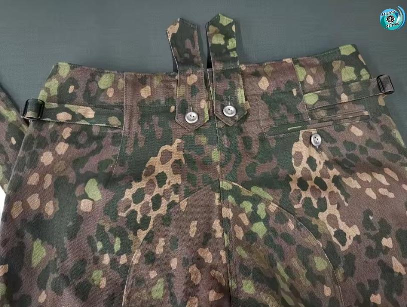 - Pantalon modèle 43, coton camouflage Dot 44, intérieur en coton blanc, lacet de serrage en bas de chaque jambe.