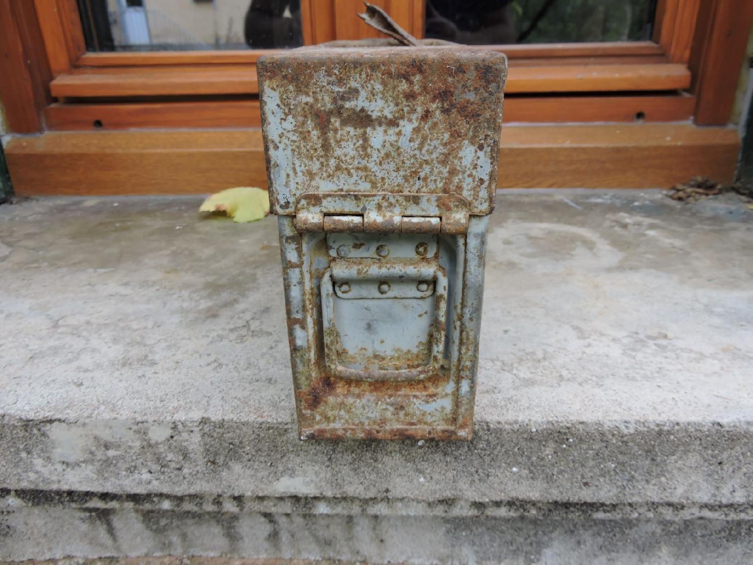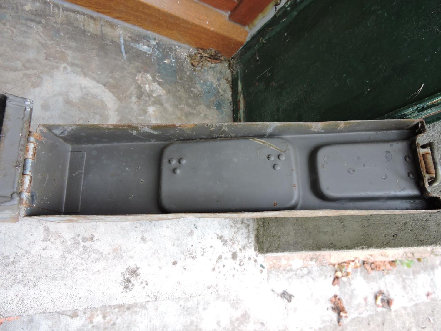 Caisse de munitions pour MG 08/15 dans une livrée grisâtre. Intérieur en excellent état.