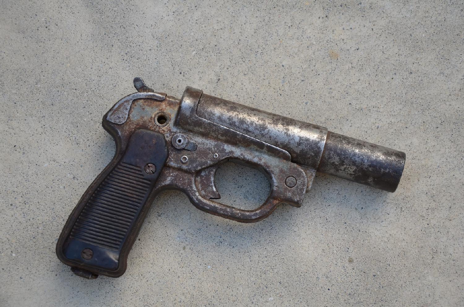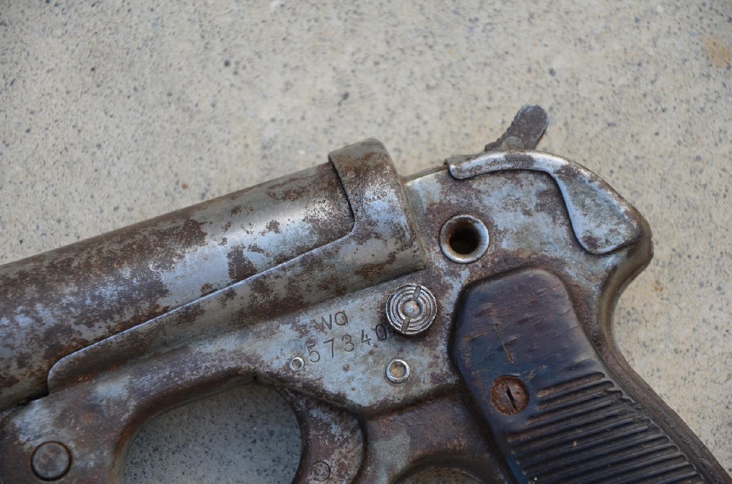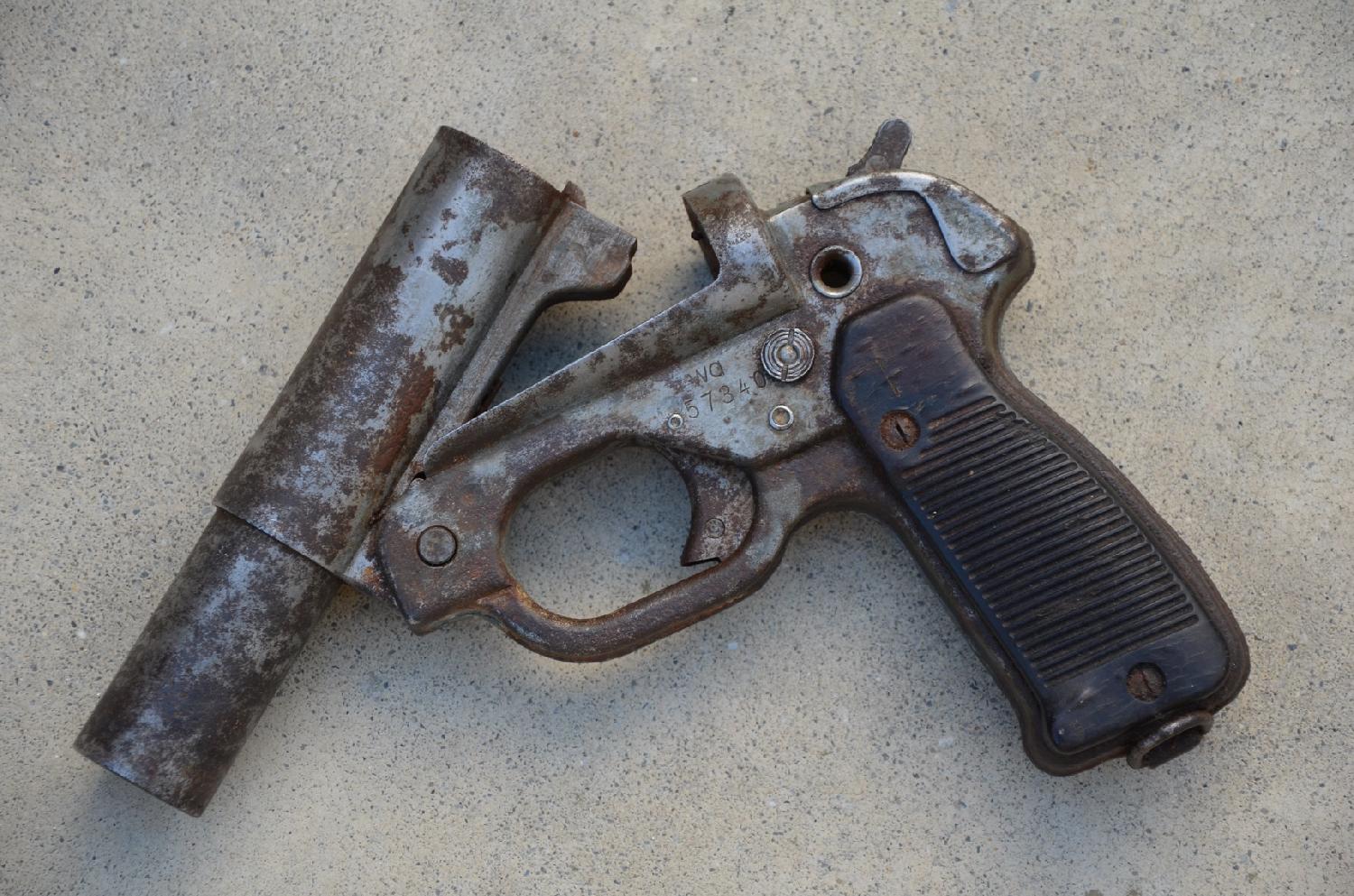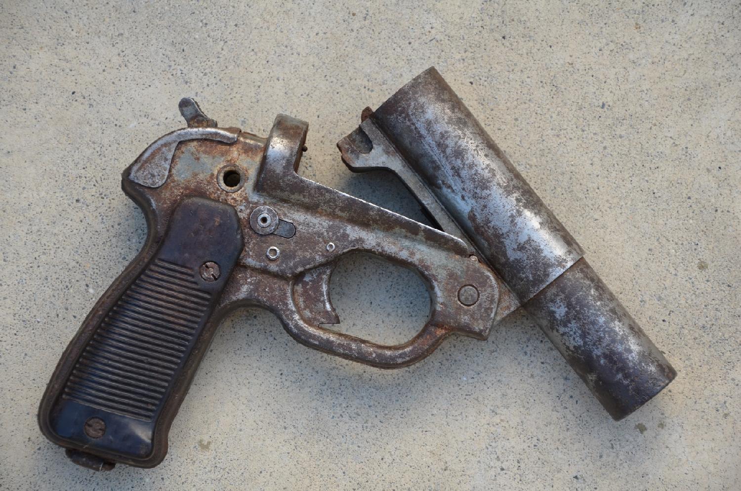 Lance-fusées LP42, traces d'oxydation légère, ressort du bouton d'ouverture du canon HS, sinon RAS.
