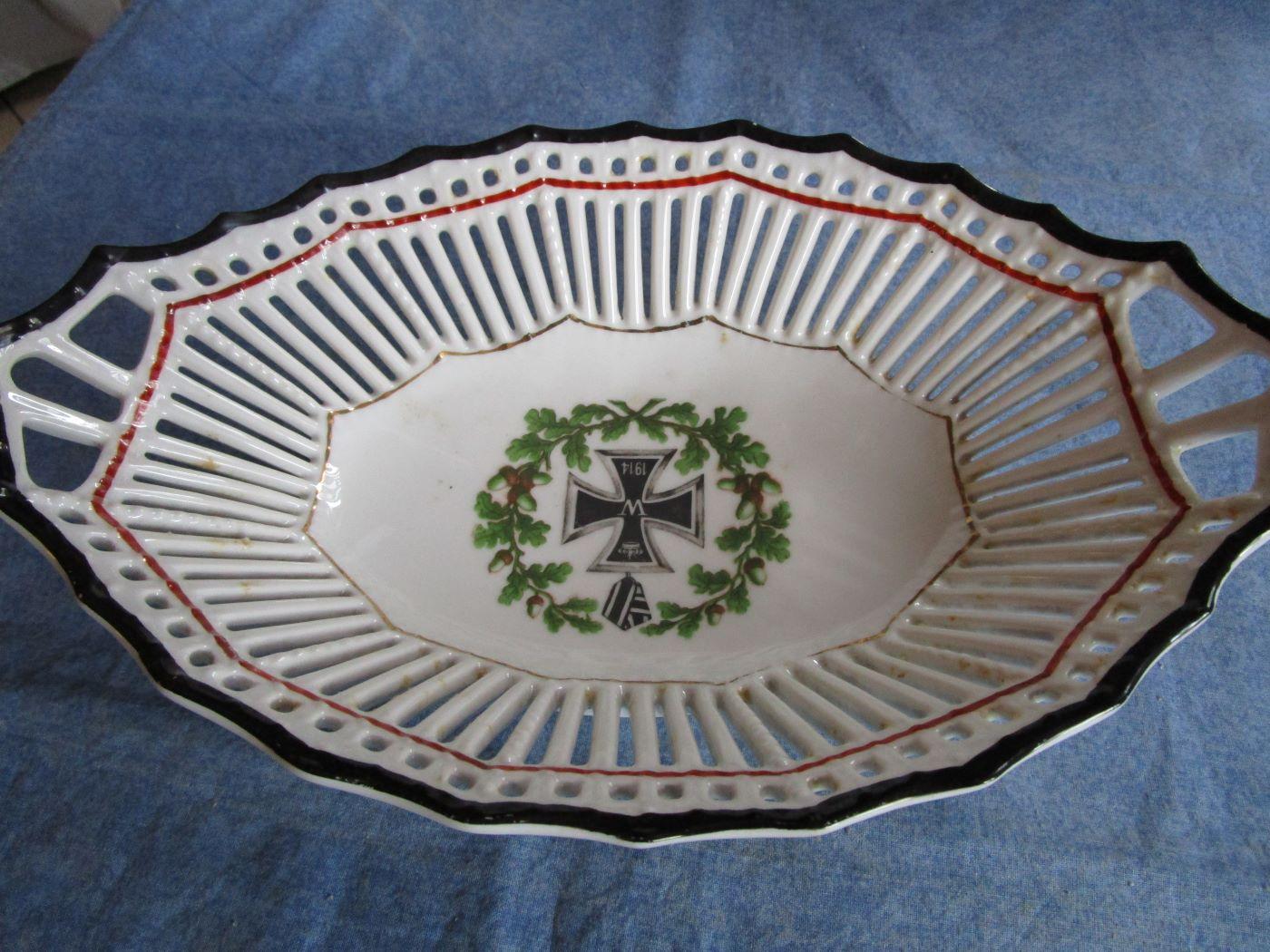Belle coupe à fruits patriotique. Format 28x18 cm. Une très petite usure sur un morceau de dorure, sinon aucune usure. Prévoir 10.70 euros en colissimo ou 7.40 euros par mondial relay. L'emballage sera soigné.