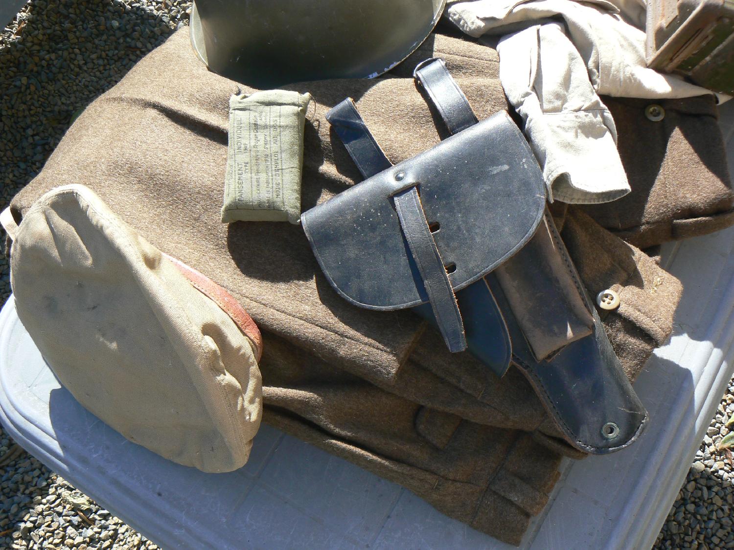 lot indo Algérie, pansement marquage 1949, coque de casque, étui cuir MAC 50 ,béret boite à munition,2 pantalons et 3chemises, contact golova50@gmx.fr si intéressé