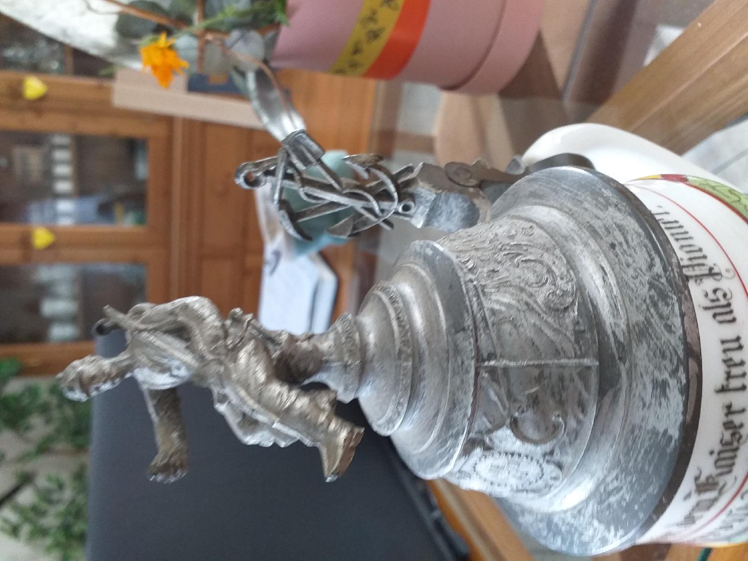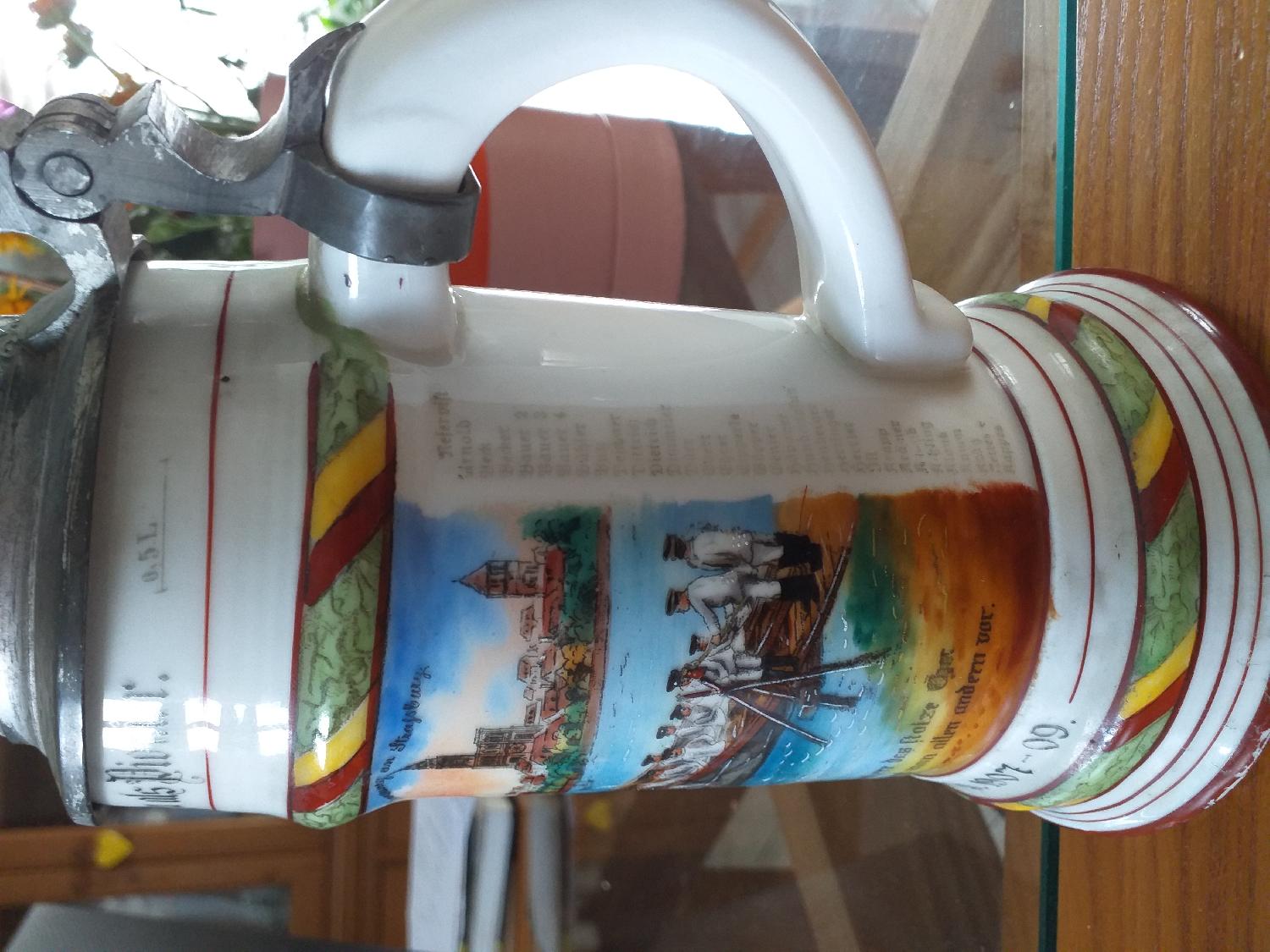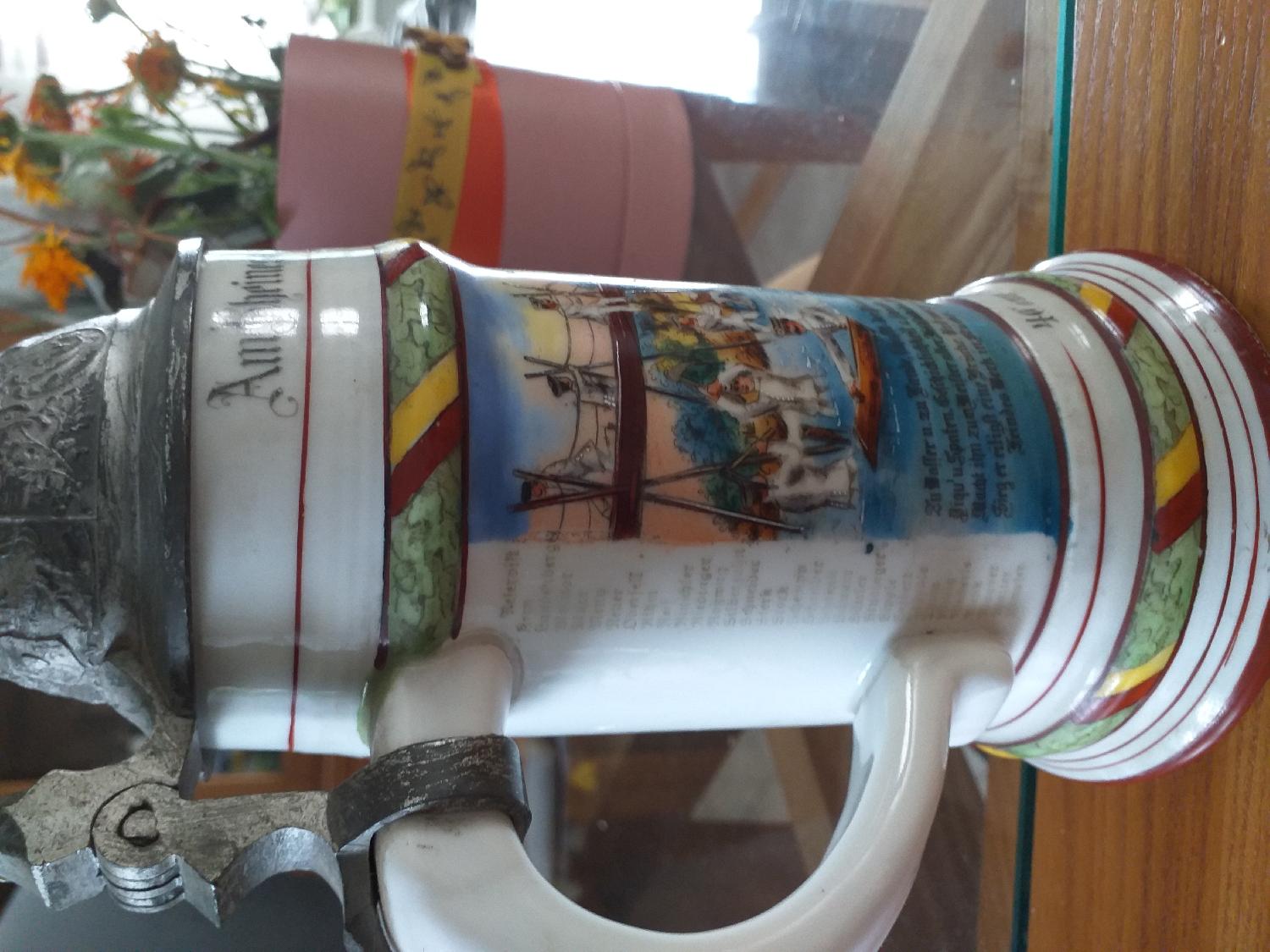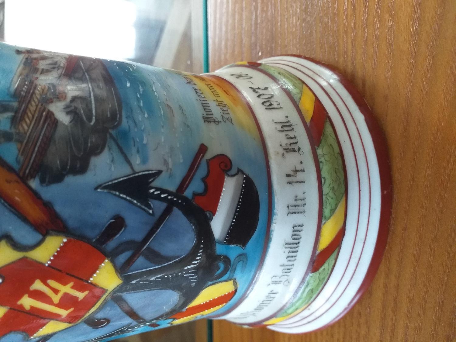 Belle chope de réserviste sans fêlures ni ébréchures, couleurs encore vives. Chope de réserviste du pionnier KRÄTZ appartenant a la 4 Cie BAD PIONNIER BATAILLON N°14 KEHL 1907 09. Les inscriptions des soldats sont atténuées mais lisibles. Jeux a la fixation du couvercle sur la poignée. Expédition en Mondial Relay pour 5,40 euros. Autre prestataire possible.
