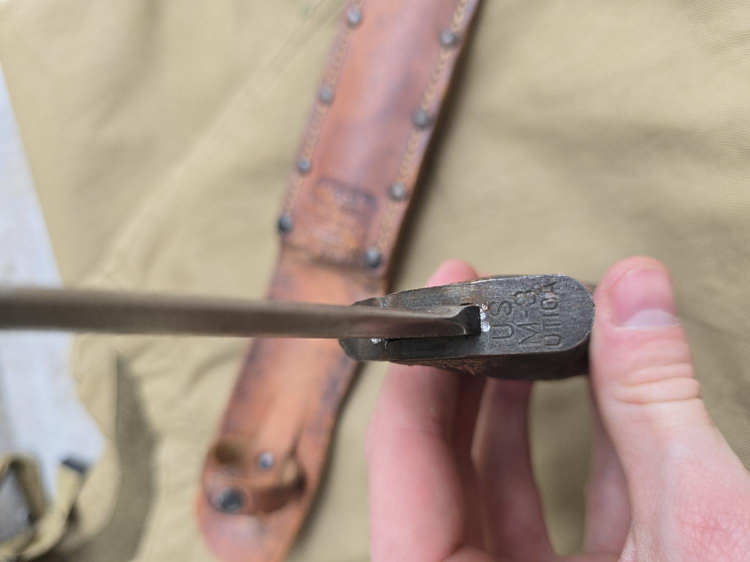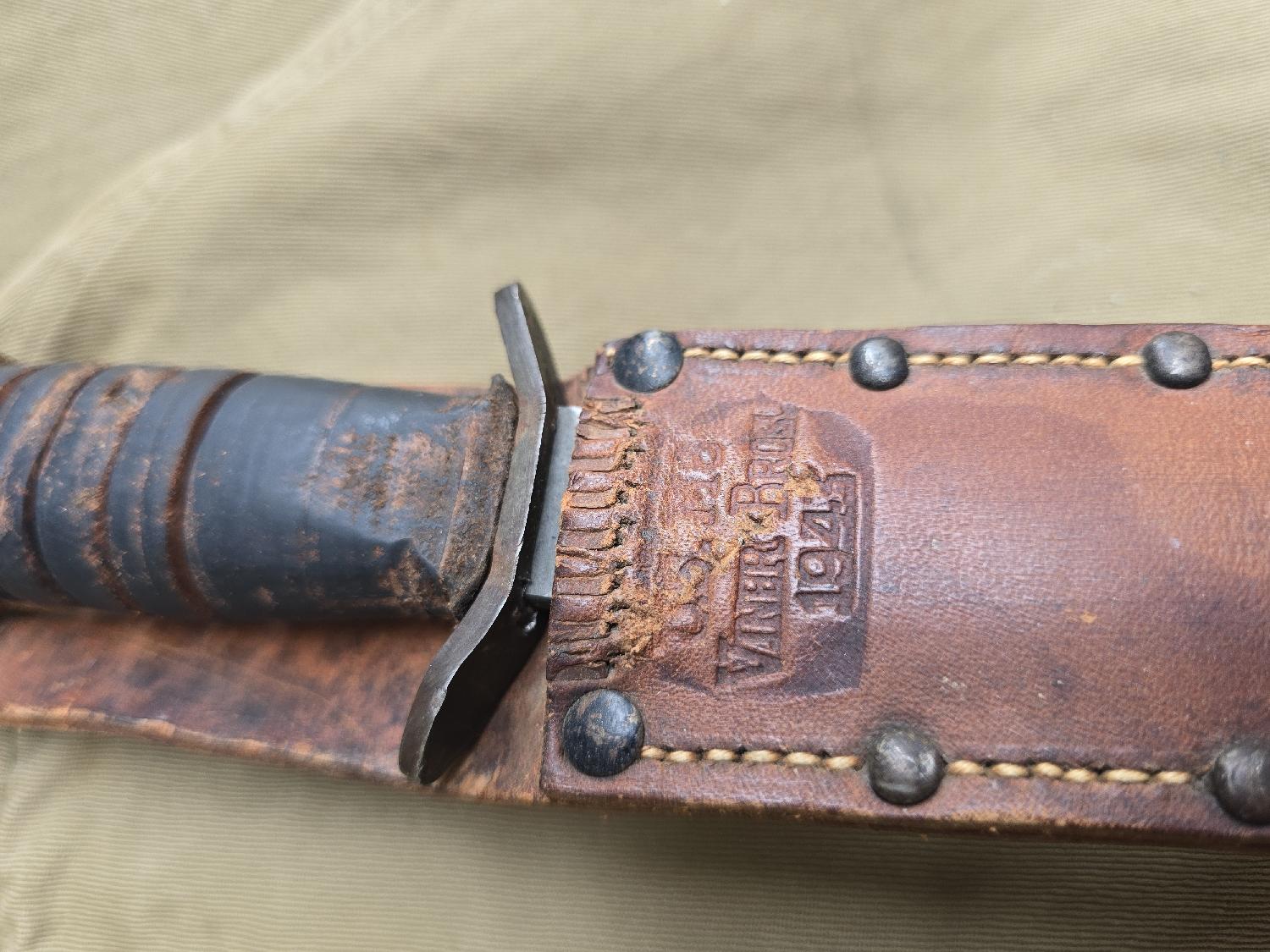 Poignard USM3 avec etuis USM6 modifier ( crochet ceinturon retirer. Mise à la ceinture de pantalon uniquement) USM6 de chez Viner Bros ( seulement 28 000 exemplaires ) agraphes retirer. Cuir souple et non cassant. Pression fonctionnelle