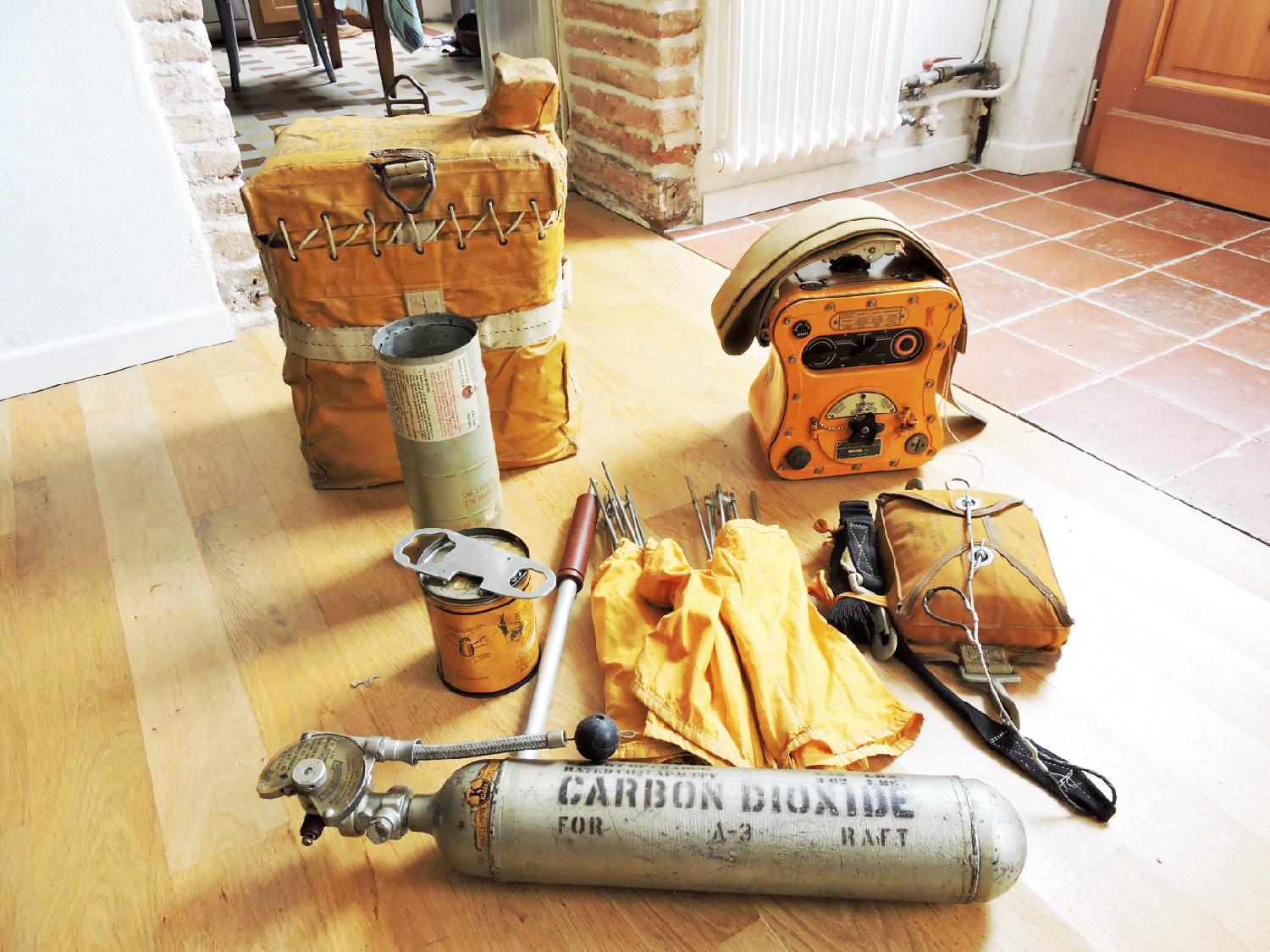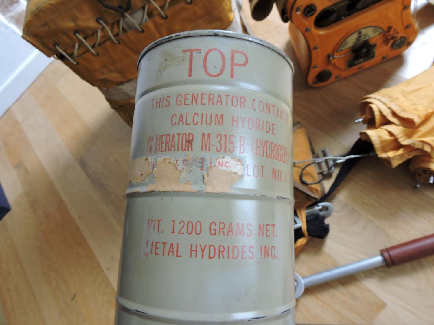 - Une cartouche vide "'hydrogen generator" avec toutes ses étiquettes servant à gonfler le ballon pour l'antenne de la radio de survie avec son tube.