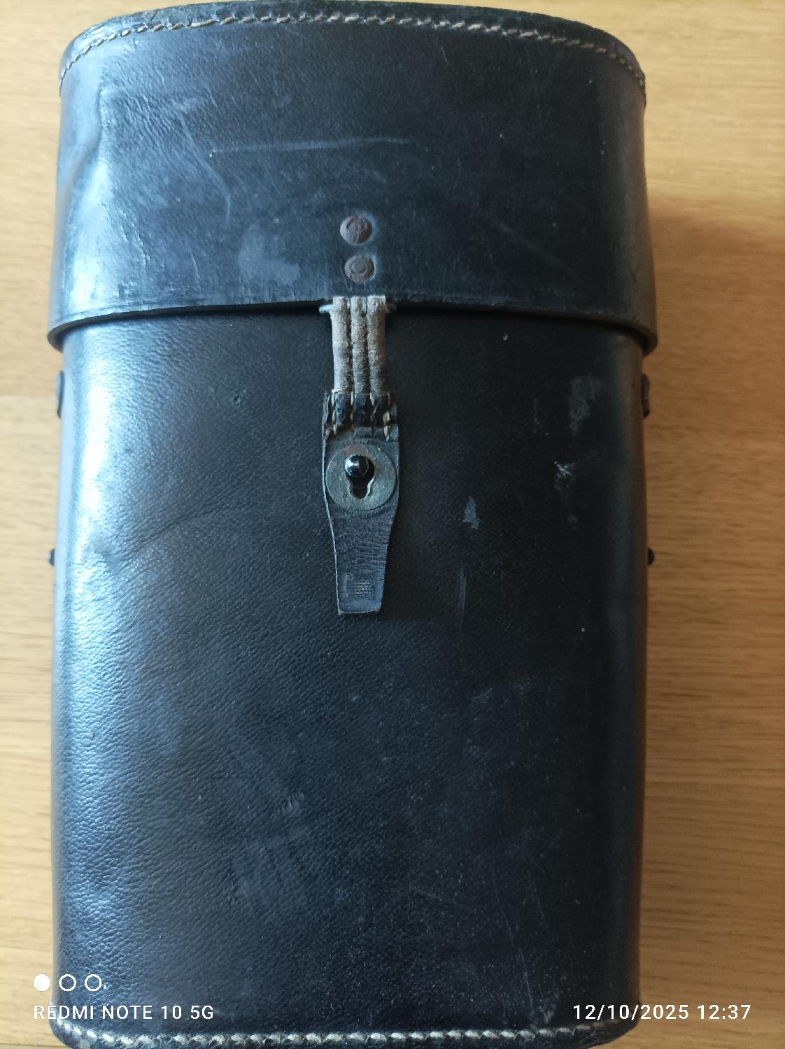 Bel étui de transport de jumelles 7x50. Marquages b...date difficile à lire ( 1942 ou 1943). Aigle KM dur le dessus. Très bon état général ( petite fragilité d'un passant arrière cf. photo). Frais de port en Colissimo suivi inclus.