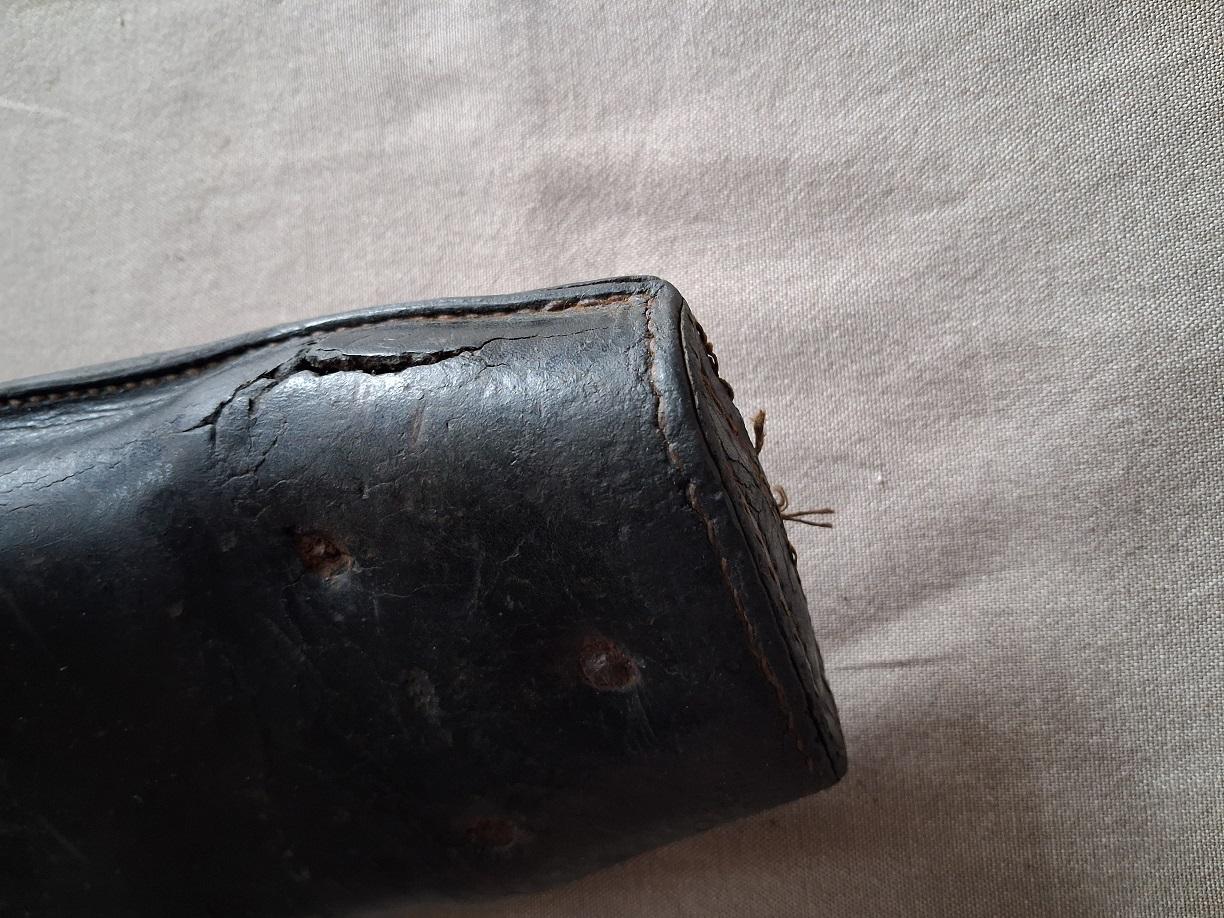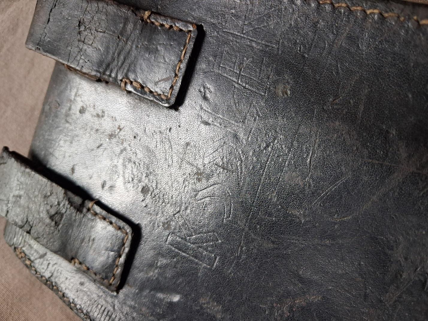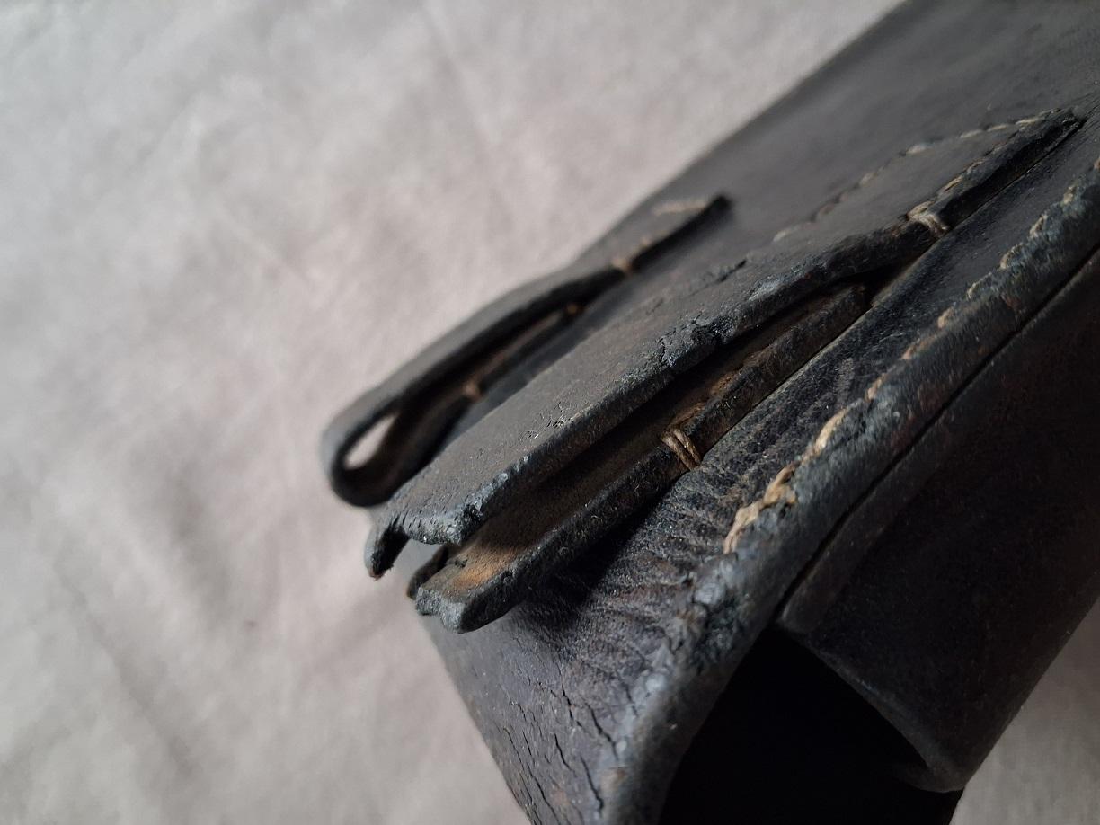 Etui cuir pour cisaille courte, Marquage fabricant sous le rabat hcy, daté 1941 et présence du waffenamt. Il manque la boucle de fermeture, un passant coupé. Le cuir est bien souple et les coutures encore très solides.