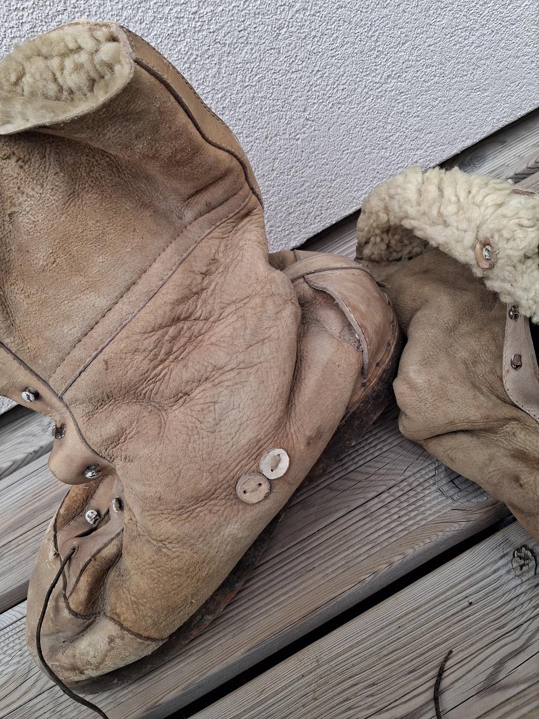 Belle paire de sur bottes fourrées en laine, modèle règlementaire Suédois ww2, trouvé en centre Alsace. Surement une récupération et réutilisation par l'armée Allemande. Semelles bois, cuir souple, boutons présents. J'ai mis également en vente la toque fourrée trouvée avec dans la rubrique casquette.