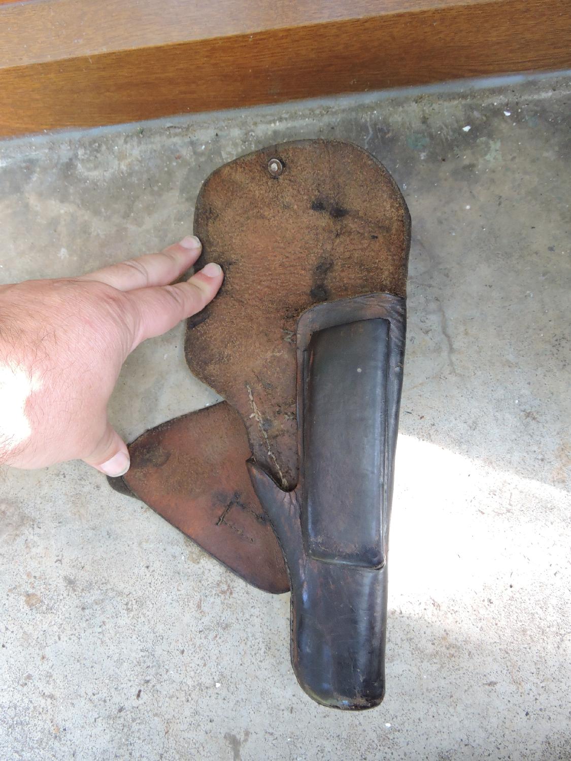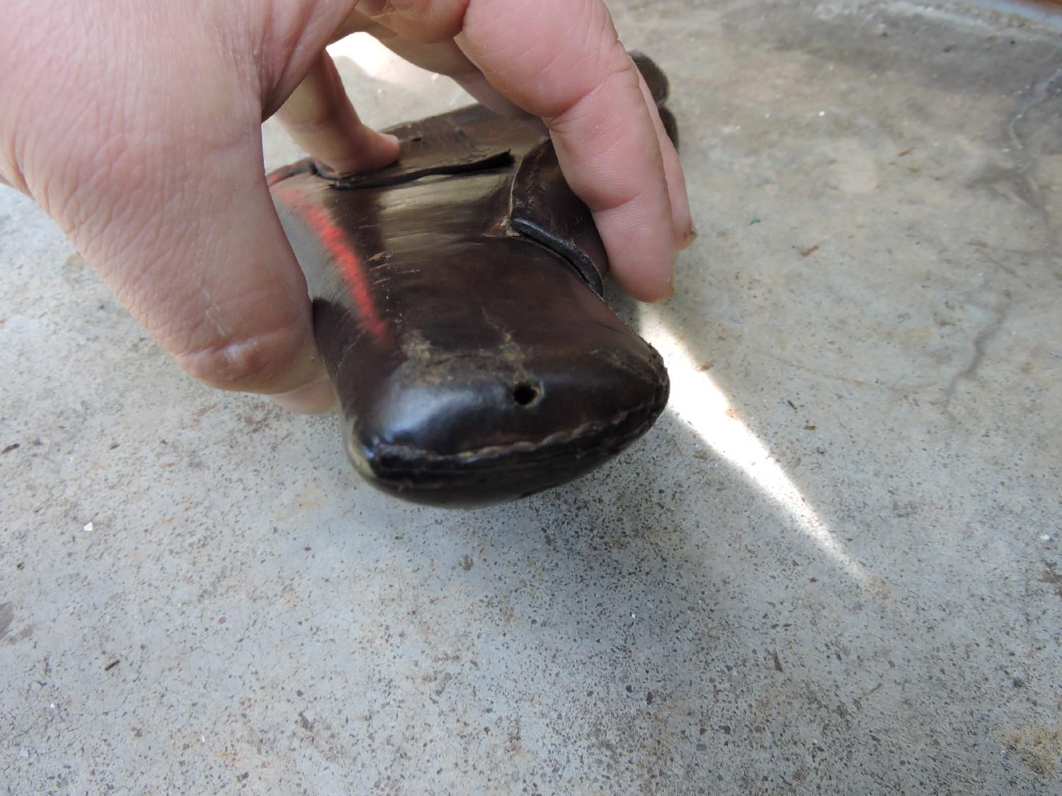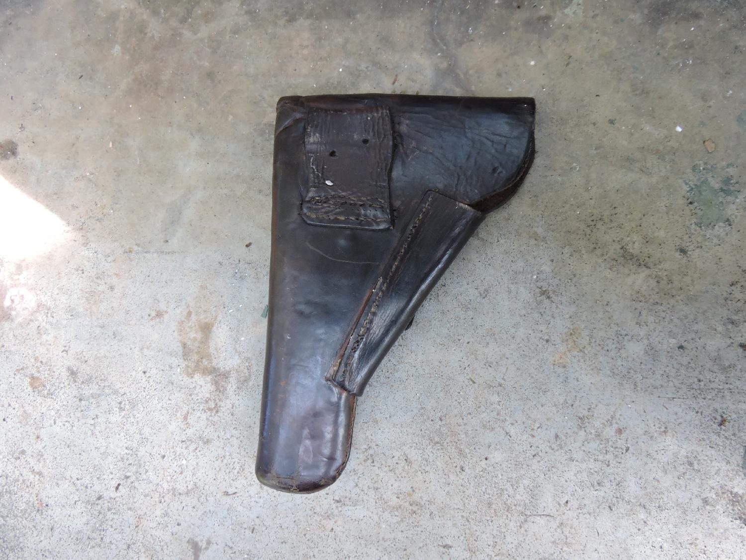 Etui de GP35 en cuir marron puis noirci. Pas de marquages. Deux petits trous sur le fond pour passer un lacet.