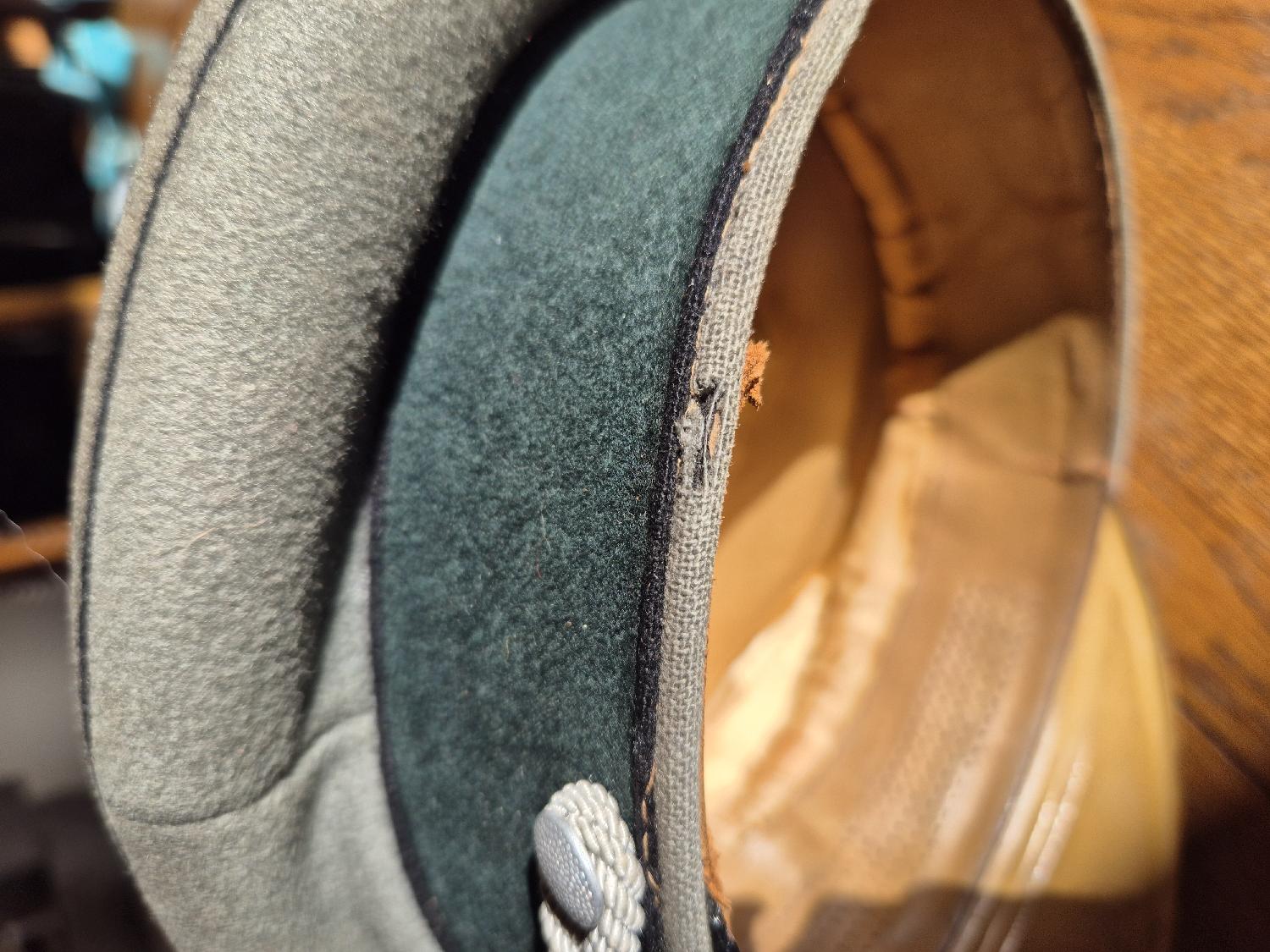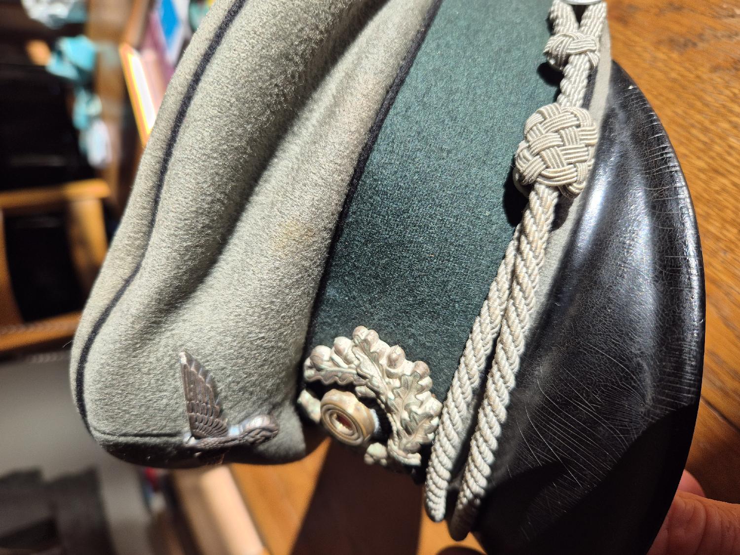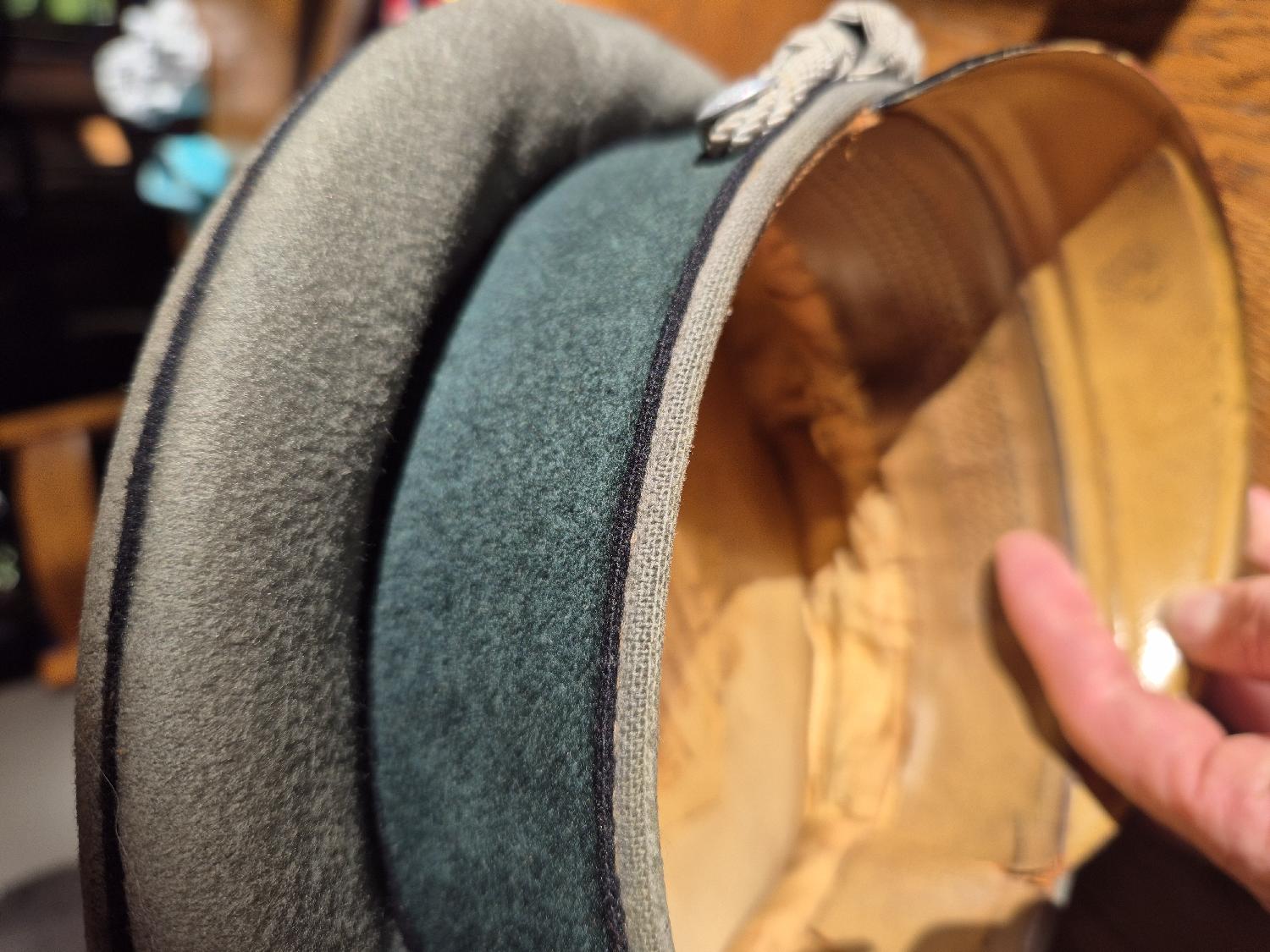 Je me sépare de cette schirmmütze d'officier du génie, en très bon état, portée, on distingue un 38 au verso de l'Aigle (impossible à prendre en photo).Le cuir est encore souple.