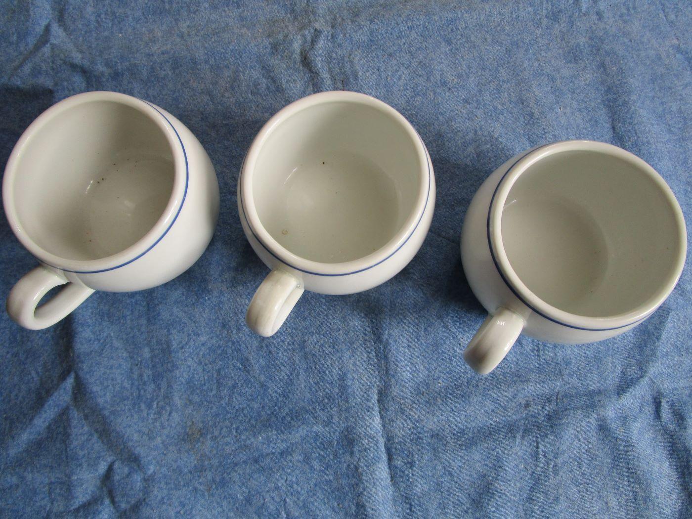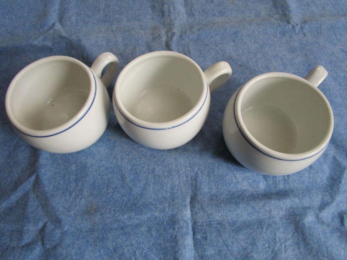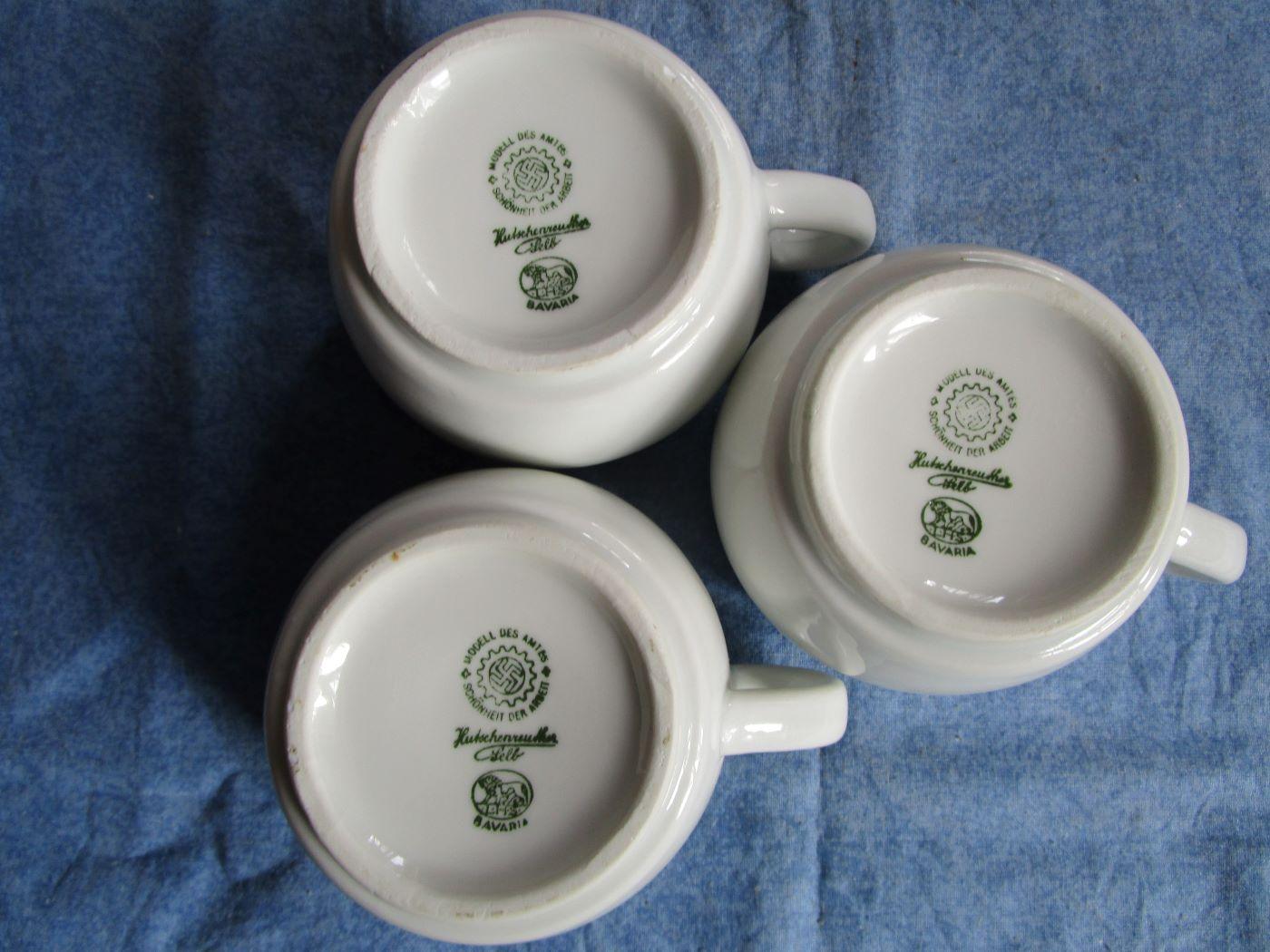 Lot indisociable de 3 tasses du RAD avec liserer bleu sur le pourtour. Diamètre de 8 cm et hauteur de 7 cm. Aucune fêlure ou ébréchure. Roue dentée et croix sur le cul. Fabrication "Bavaria". Prévoir 10.70 euros en colissimo ou 7.40 euros par mondial relay. L'emballage sera soigné.