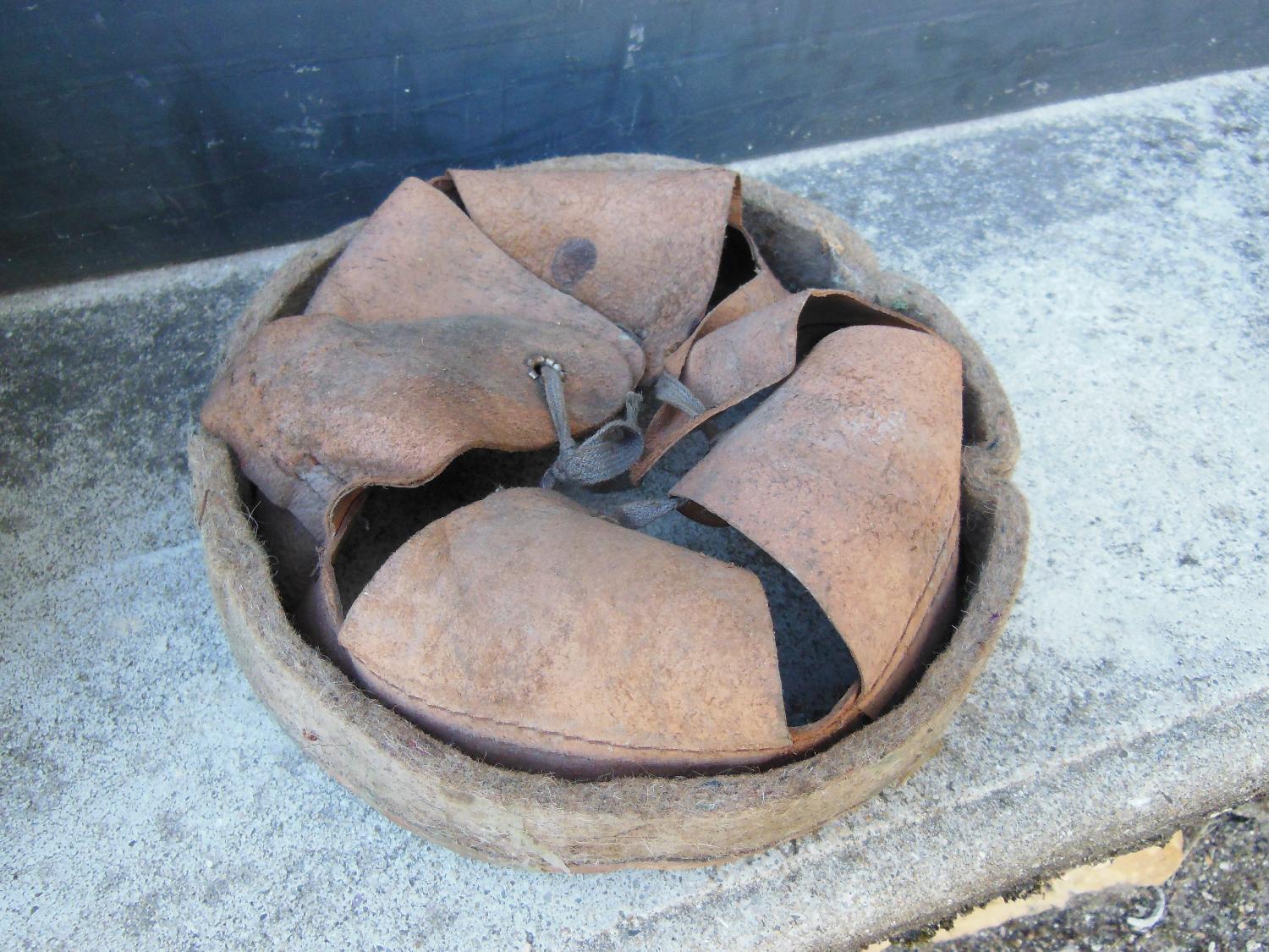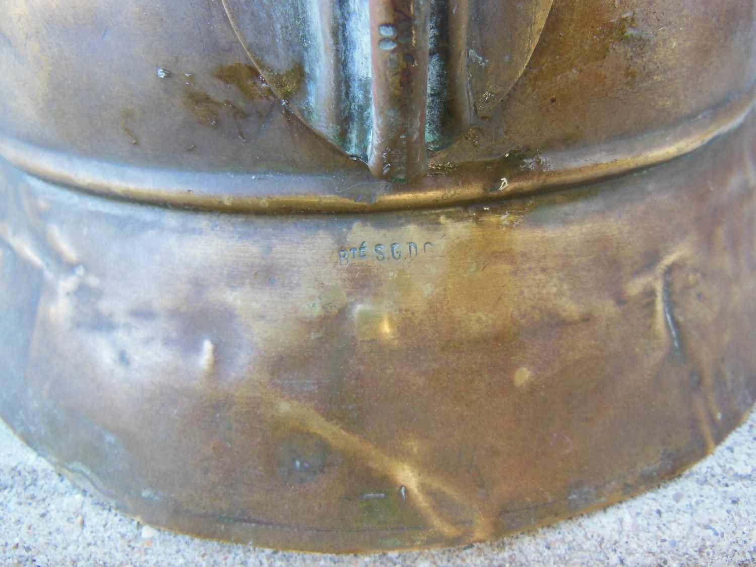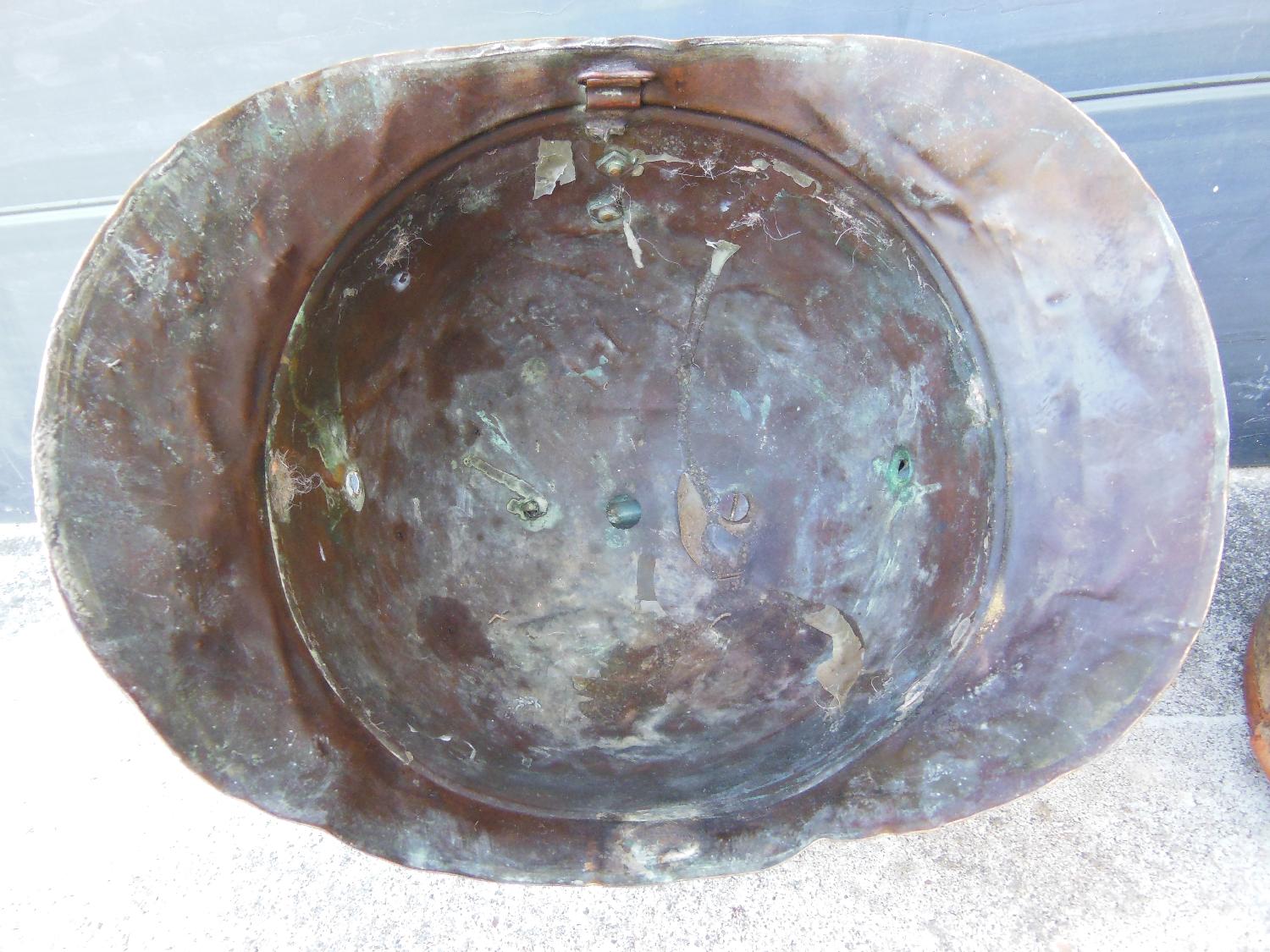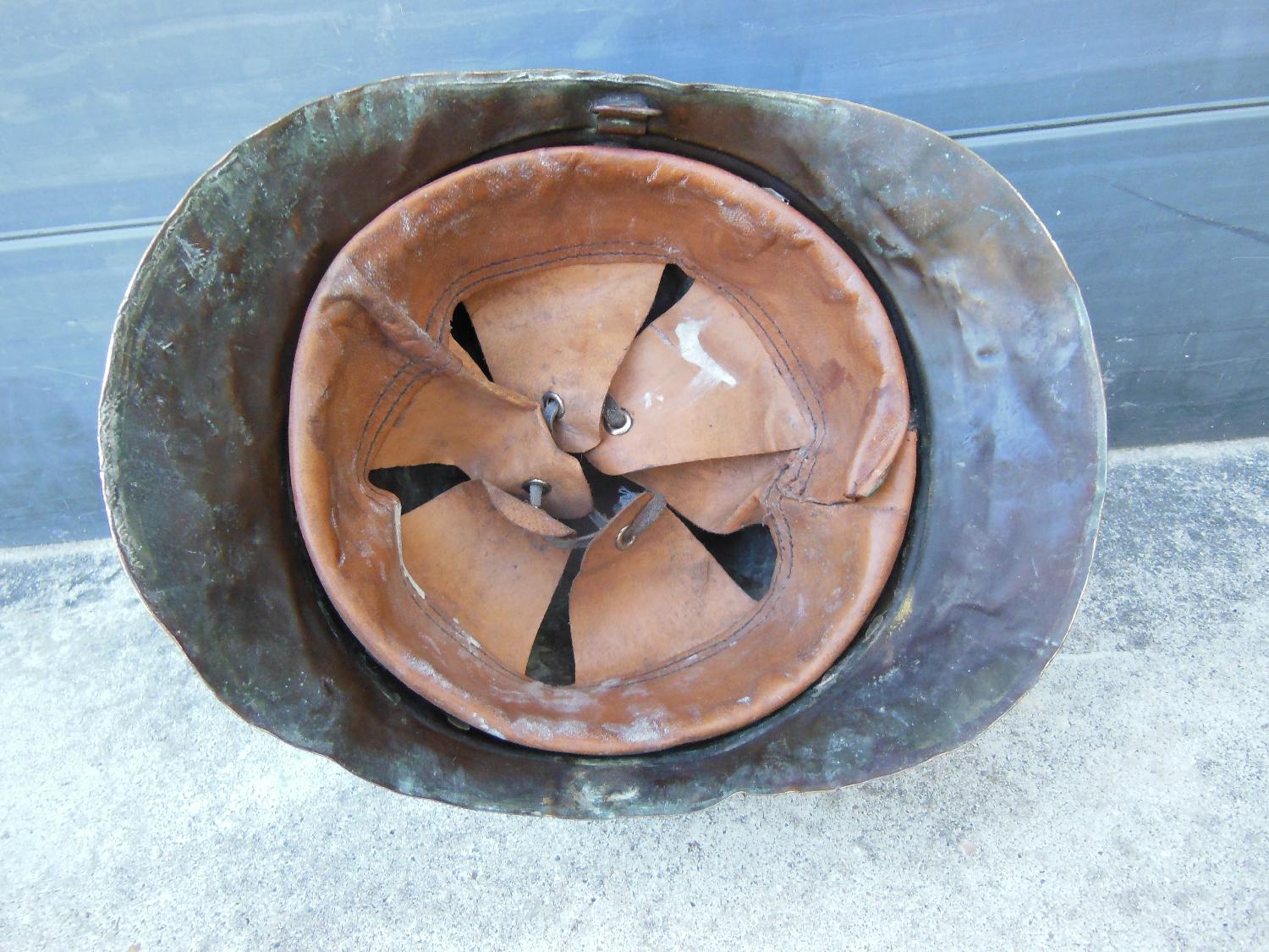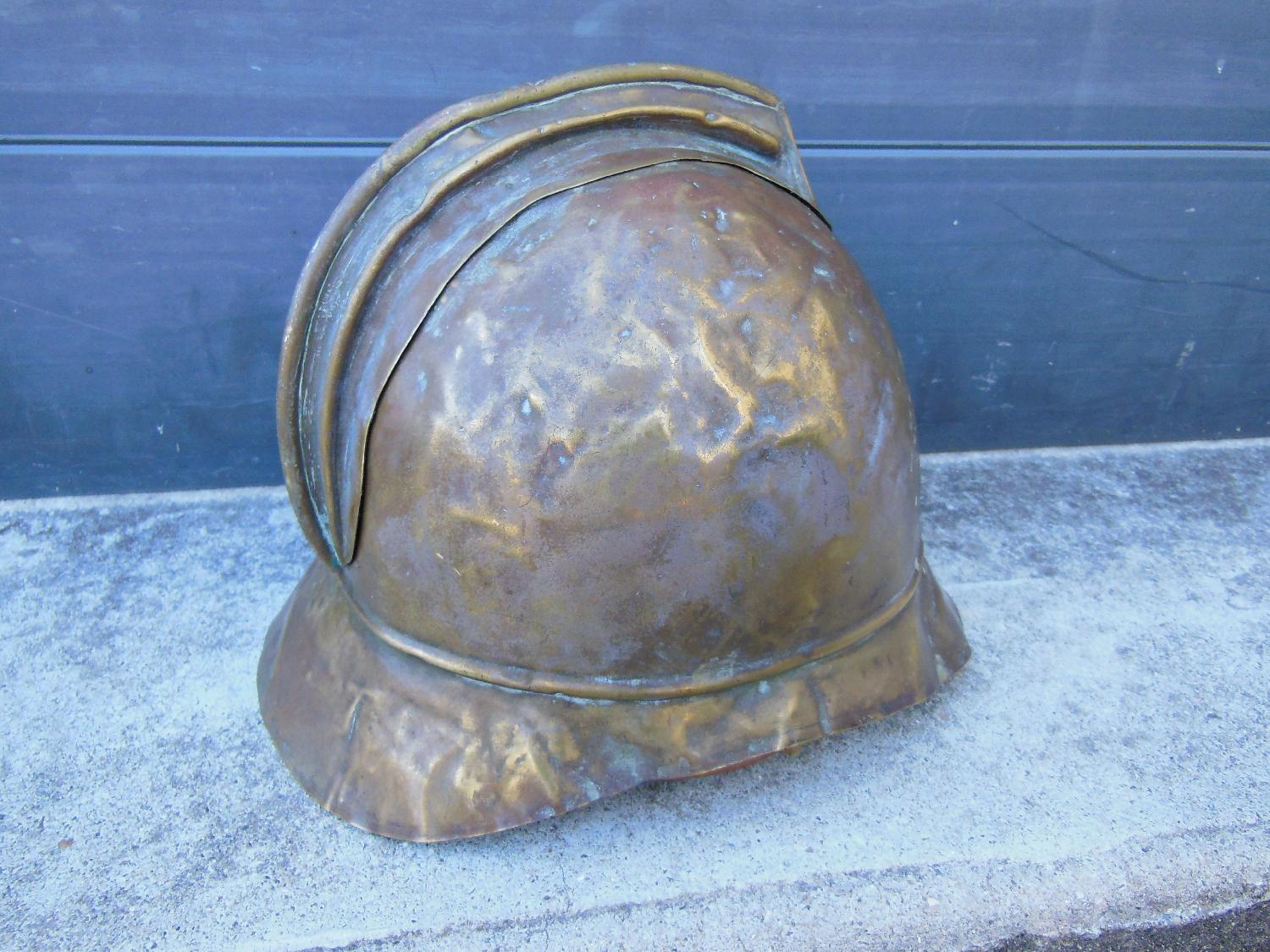 Casque de pompier en laiton en l'état. Il manque deux vis de maintien du cimier.
