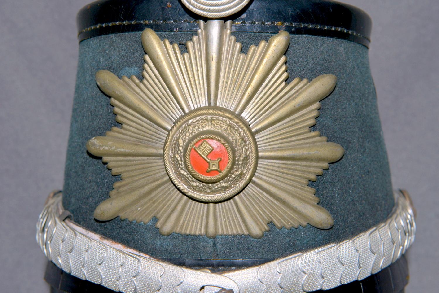 Peu courant shako d'officier de police de Brême ,époque Weimar jusqu'en 1936. Etat correct .