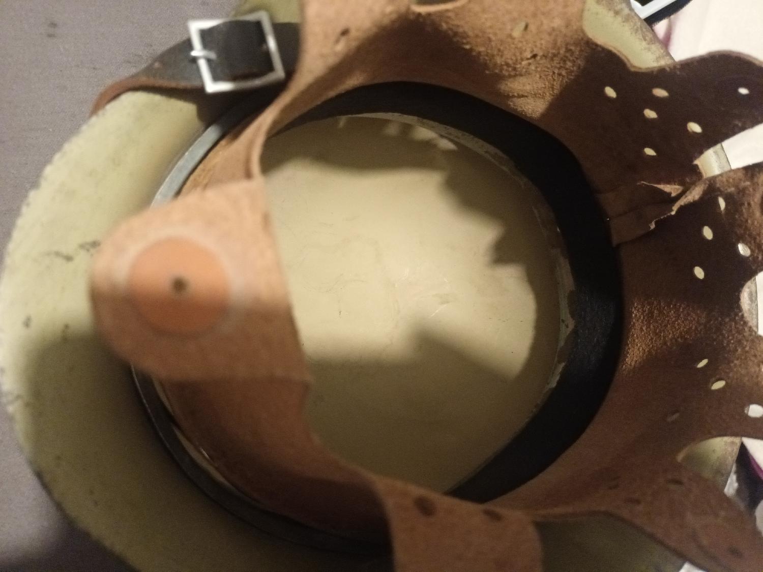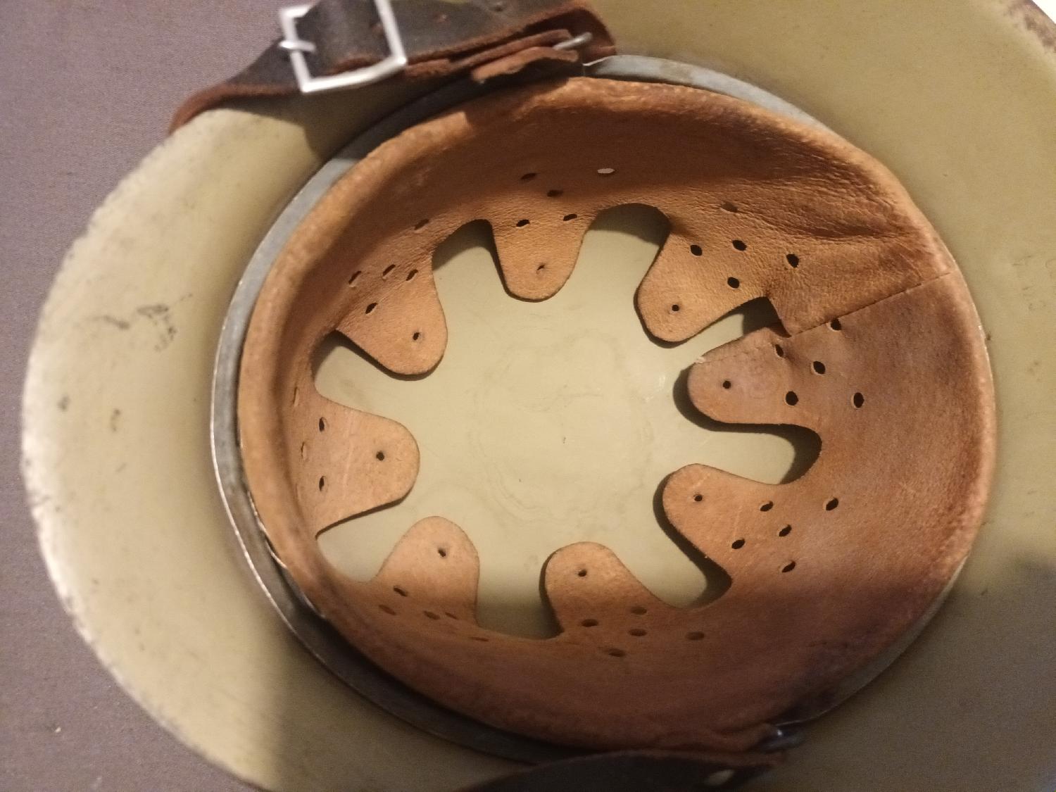 Casque mod 42 sable recamouflé avec insigne détouré complet . Bonne coque 64 marquée sur la nuque. Cuir belle repro ancienne avec la jugulaire boucle aluminium. 5 € de livraison en mondial relais payable avec PayPal entre proche.