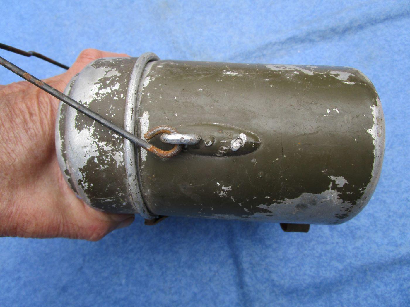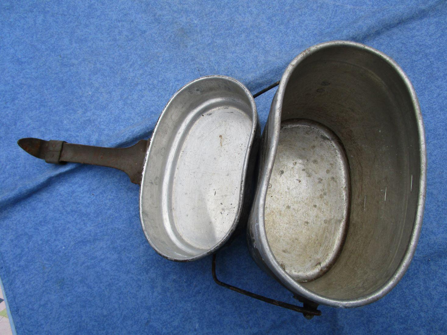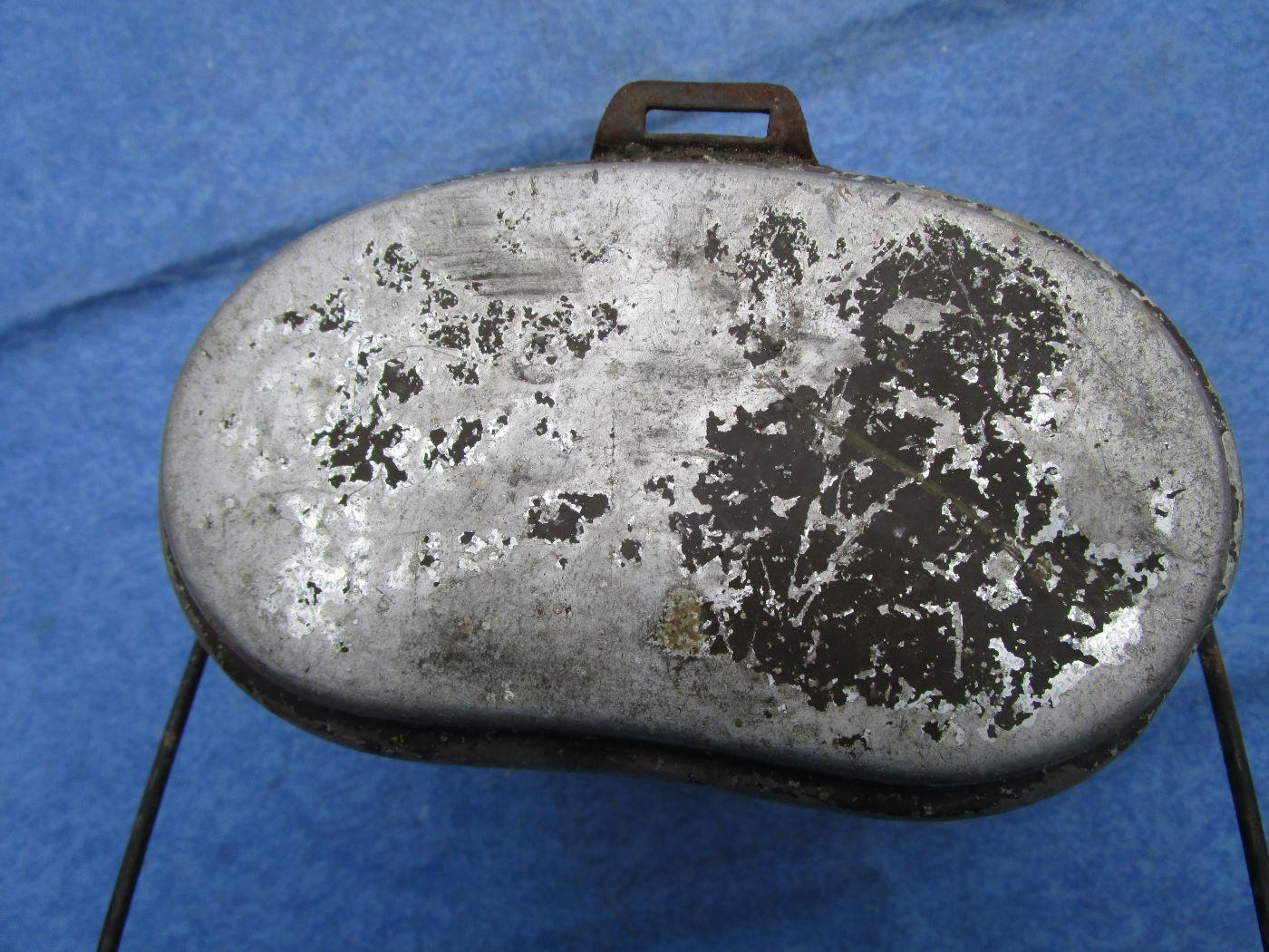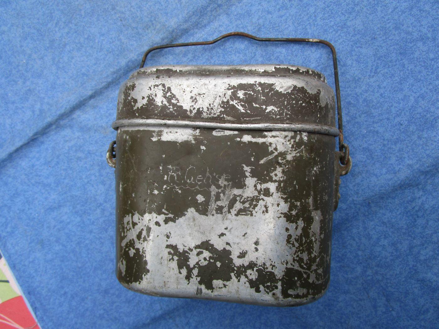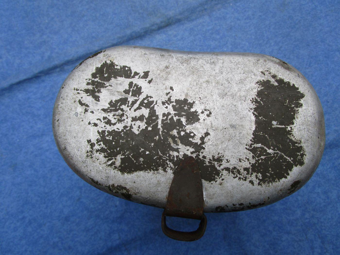 Trouvée telle quelle, couvercle daté 41 et gamelle datée 43. Peinture bien homogène sur les deux pièces. Nom du soldat sur la gamelle et initiales sur le couvercle. Prévoir 9.40 euros en colissimo ou 5.40 euros par mondial relay. Autres photos sur demande.