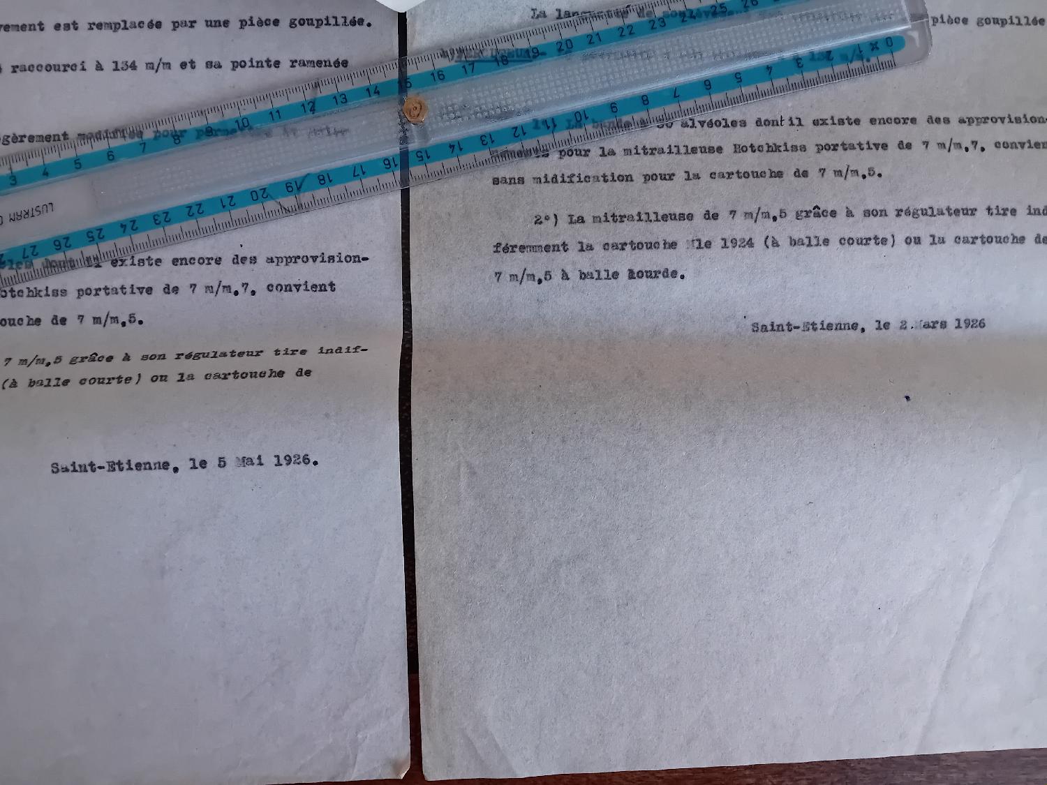 Rapports sur l essai de modification de la mitrailleuse hotchkiss du calibre 8mm lebel au 7.5 mas.