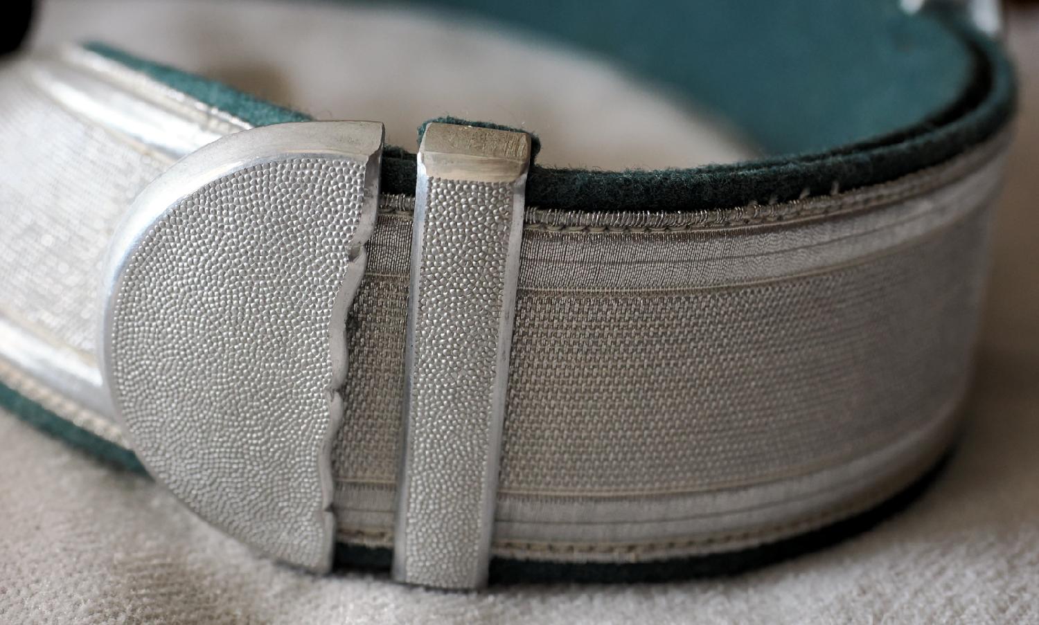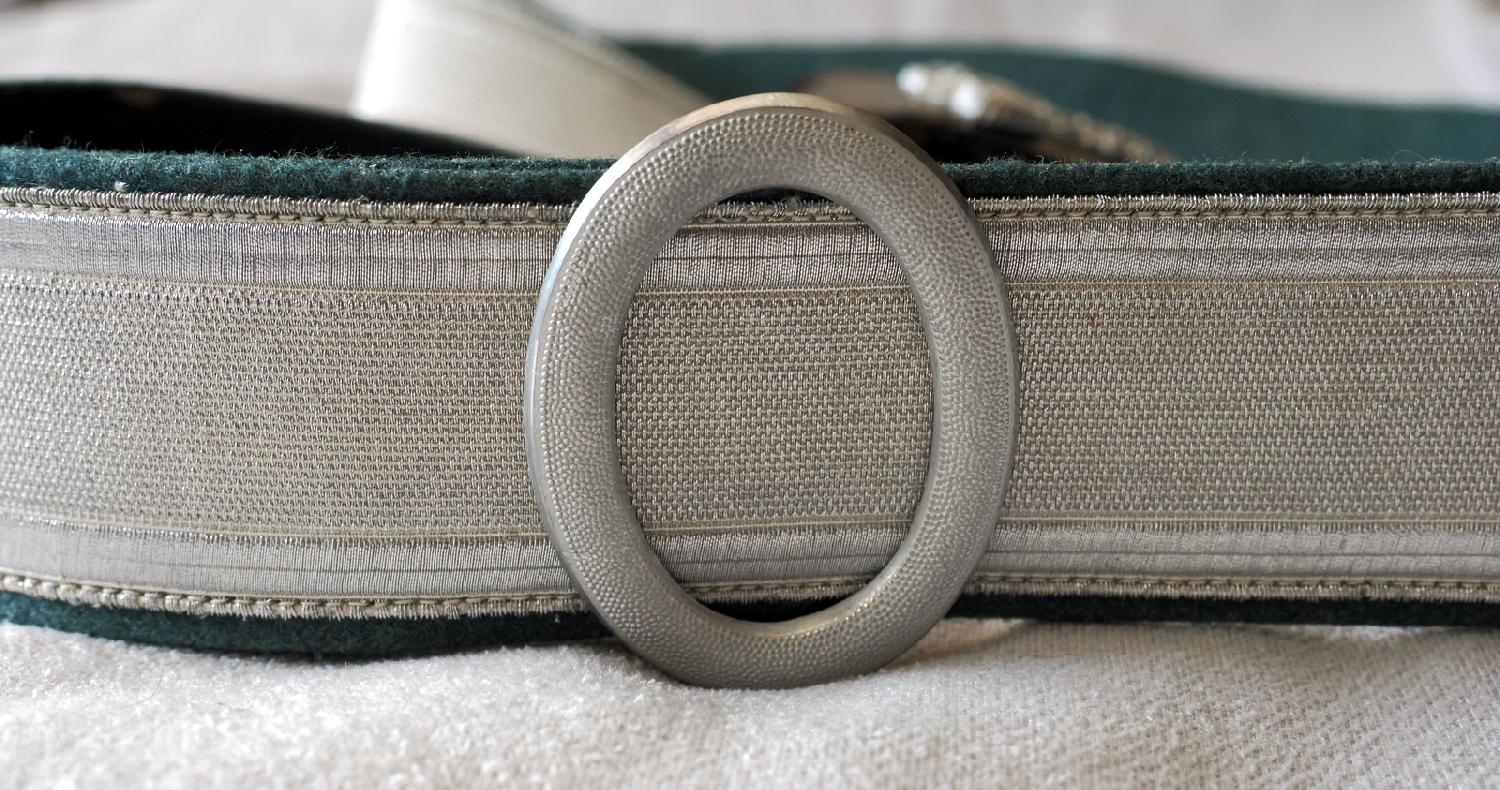 Bandoulière de parade en canetille et boucles argentées avec cartouchière cuir noir.