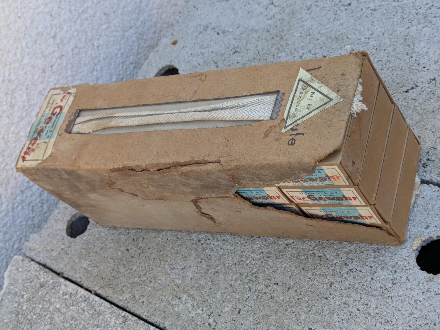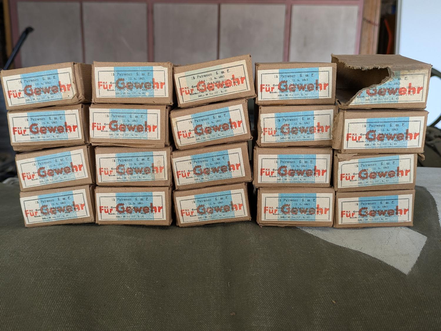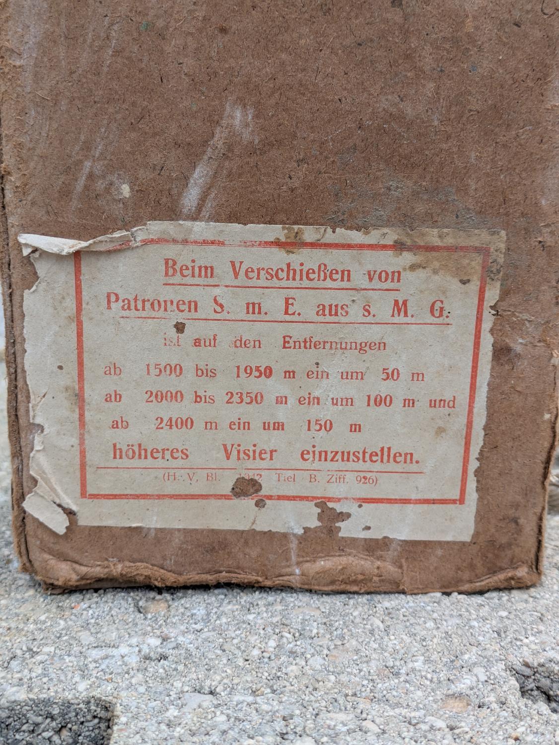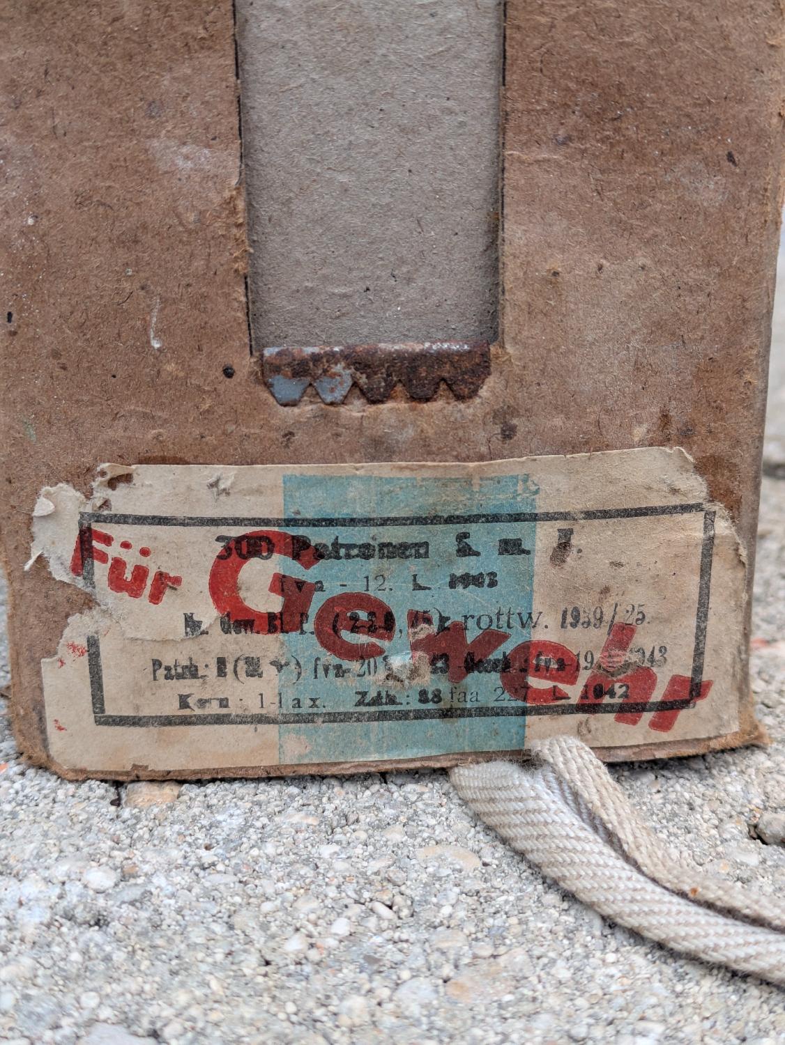 Box carton avec ses boites vides de munitions pour fusil et MG avec toutes ses étiquettes.