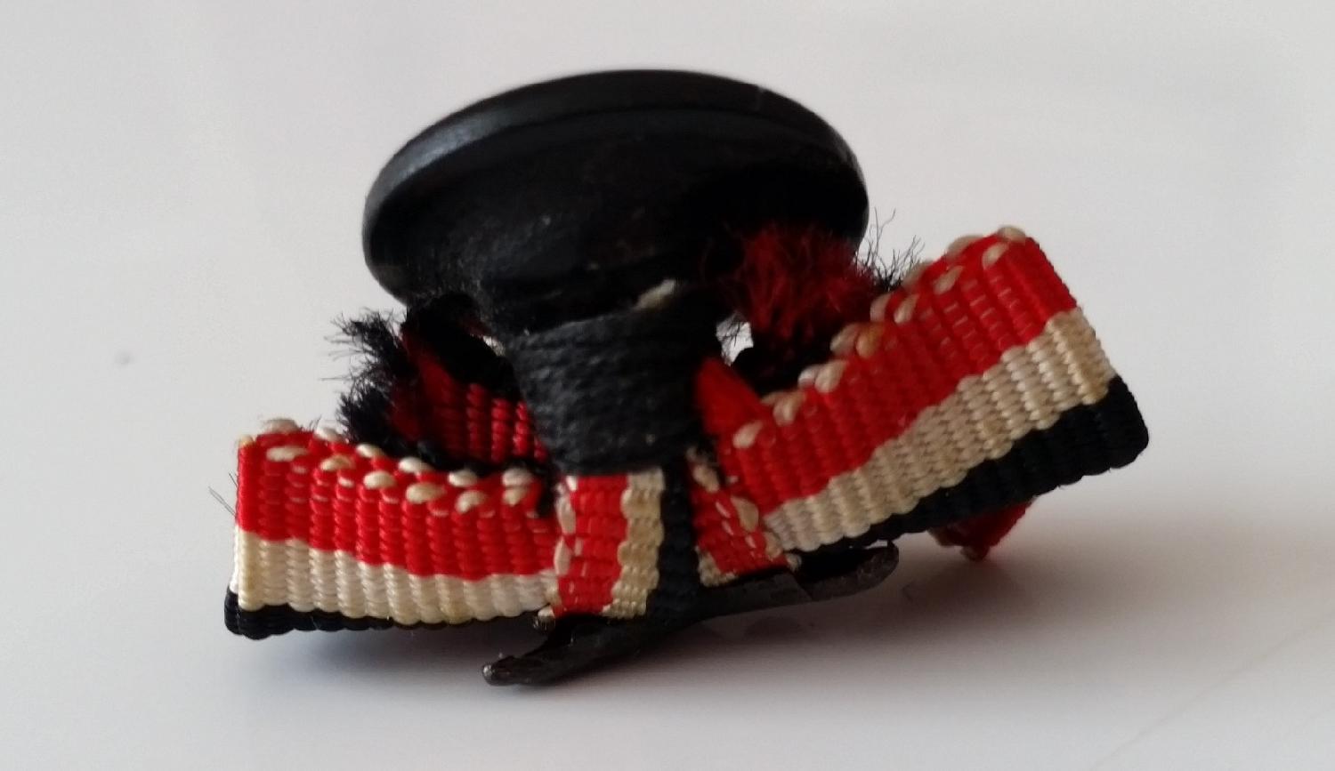 Rappel pour la Croix du mérite de guerre de 2ème classe avec glaives (KVK2). Montage sur bouton en bakélite. Longueur de 2,5 cm. Très bon état. Authentique, respect de la charte du collectionneur.
