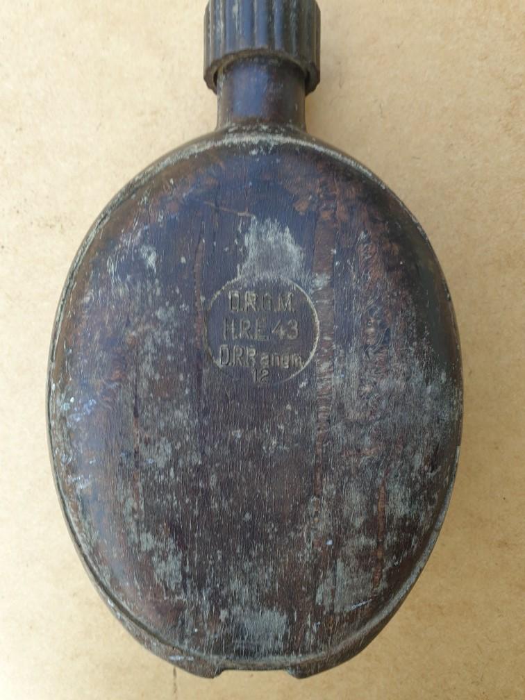 Gourde noix de coco Allemande WW2 sans housse marquée DRGM/H.R.E. 43/DRP angm/12.