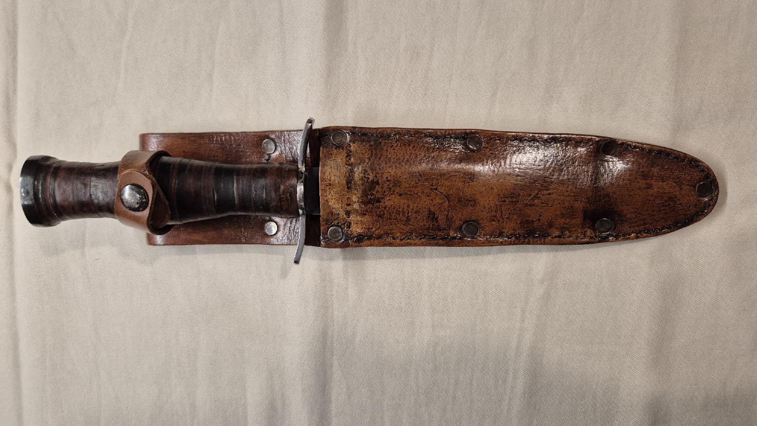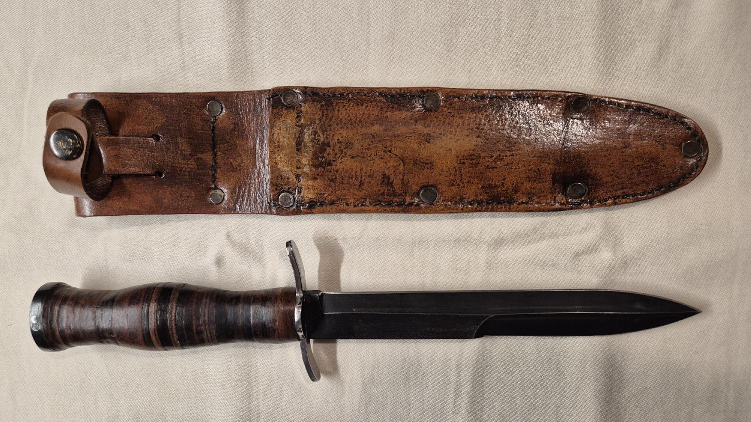 Poignard USM3 camillus refabrication et modifié local après guerre, lame pleine longueur avec fourreau cuir artisanal,