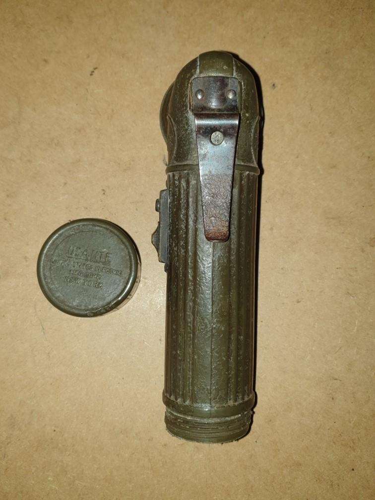 Lampe torche TL122-B de l'armée américaine seconde guerre. Date de fabrication août 1943, marque et lieu de fabrication US ALITE New-York.
