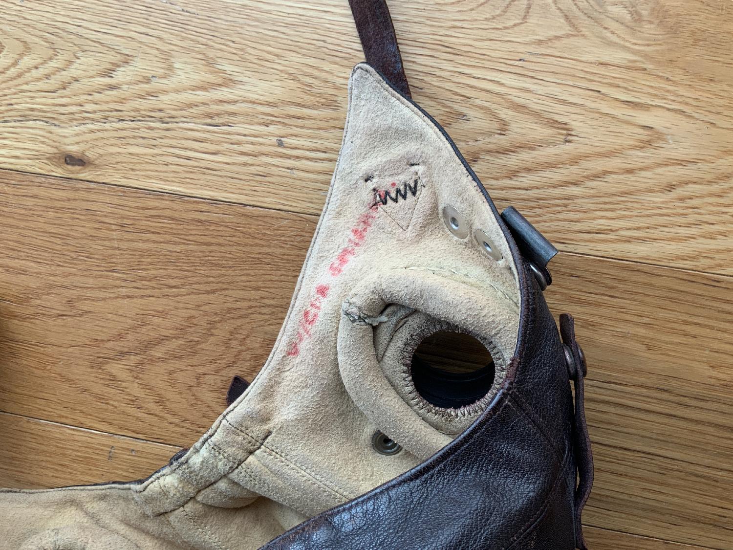 Bonnet de pilote de la RAF, très bon état, juste de petits dégâts à signaler sur la tête (voir poto). Reste de marqages AM et nom du pilote. Model utilisé par les pilotes en 1943/1944, et très prisé des pilotes US pour son confort.