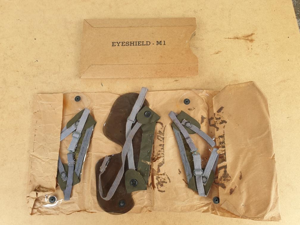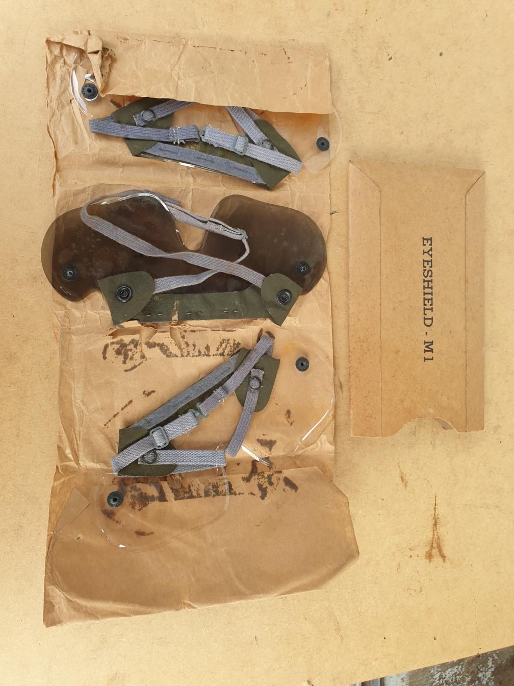 Lunettes consommables de protection contre les gaz, d'origine deuxième guerre, standardisées en avril 1943 dans leur étui carton d'origine.tique retient les lunettes sur le visage. Livrées dans leur étui en carton d'origine.
