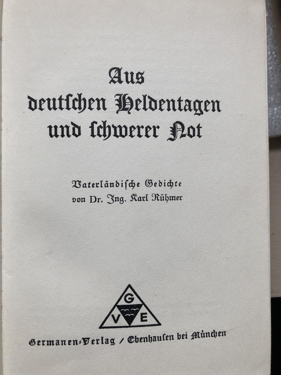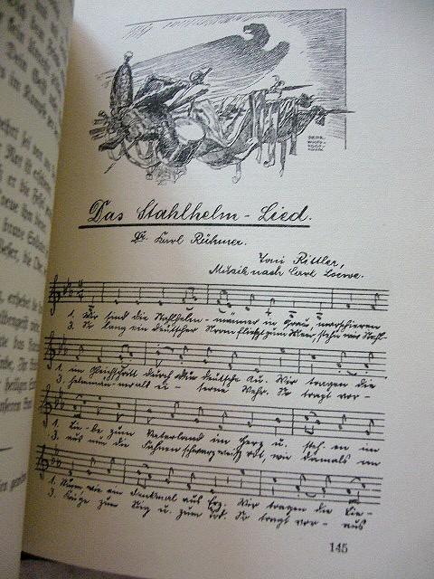 Livre Allemand en très bon état de 152 page ayant pour titre : AUS DEUTSCHEN HELDENTAGEN UND SCHWERRER NOT (Sur la lourde nécessité des jours héroïques allemands). Nombreux dessins, récits et partitions de chansons. Livre édité en 1933. Il est à noter en page 61, la présence d'un Édelweiss séché !...