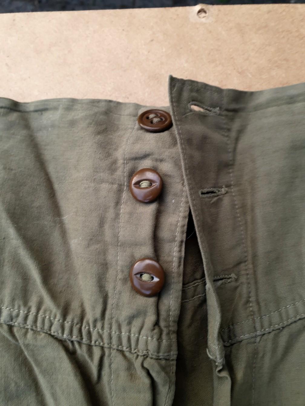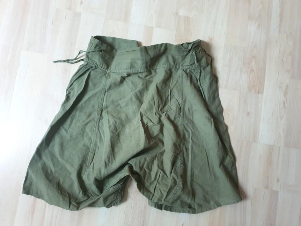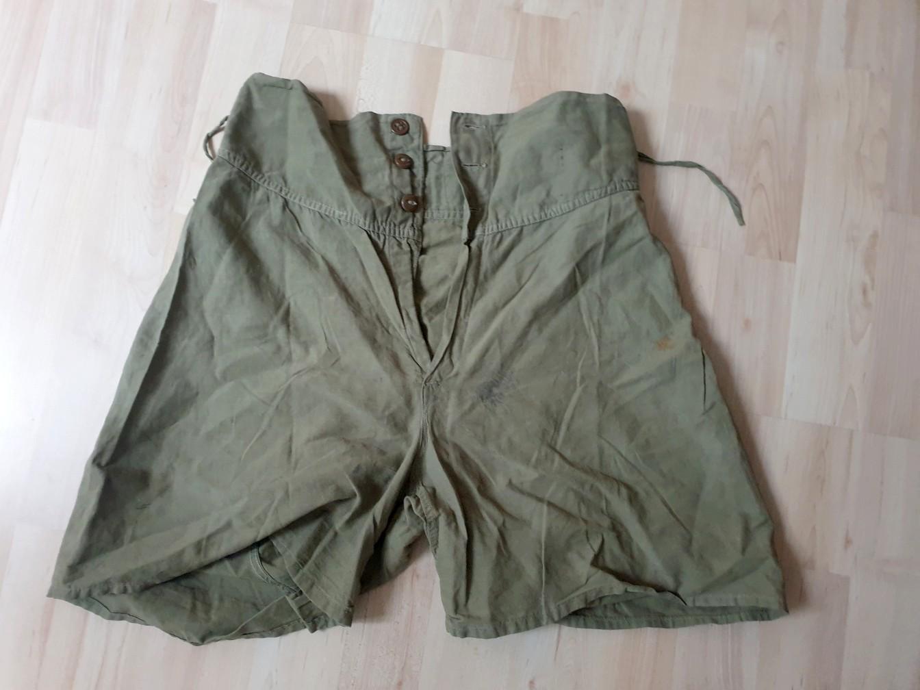 Calecon court réglementaire de l'US ARMY d'origine deuxième guerre. Cet exemplaire fabriqué en coton de couleur OD et en bon état général avec ses 3 boutons présents et ses sangles de serrages.