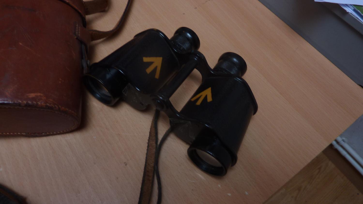 Jumelles anglaises WW II. Pièce exceptionnelle complète. Comporte plusieurs flèches du war department sur le cuir et l'optique. Optique en parfait état. Nom du propriètaire sur le cuir. 130 euros plus port 7,25 euros en mondial relay. Paiement par chèque ou paypal. Possibilité de passez sur place.